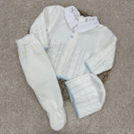 Baby Boy's White & Blue Cable Spanish Knitted Outfit