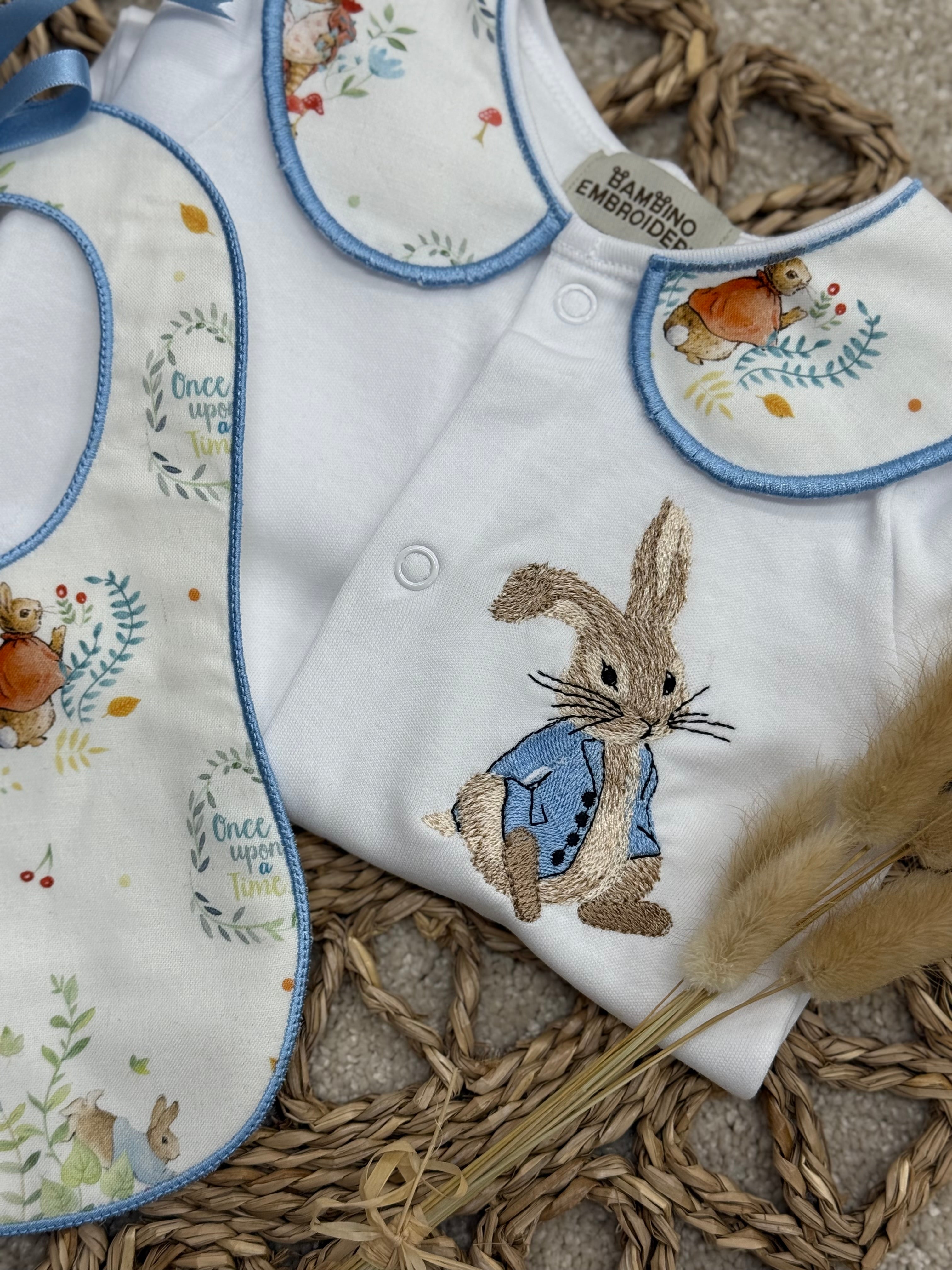 Boys Peter Rabbit Handmade Sleepsuit And Bib