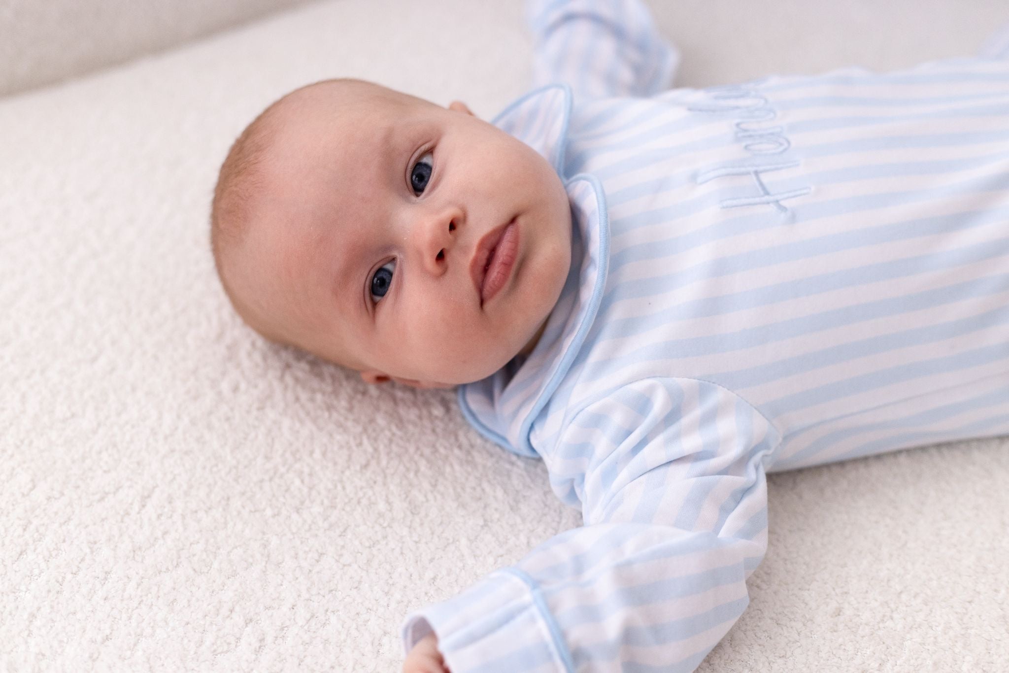 PRE-ORDER Baby Boy Mummy & Me Blue Stripe Collared Sleepsuit
