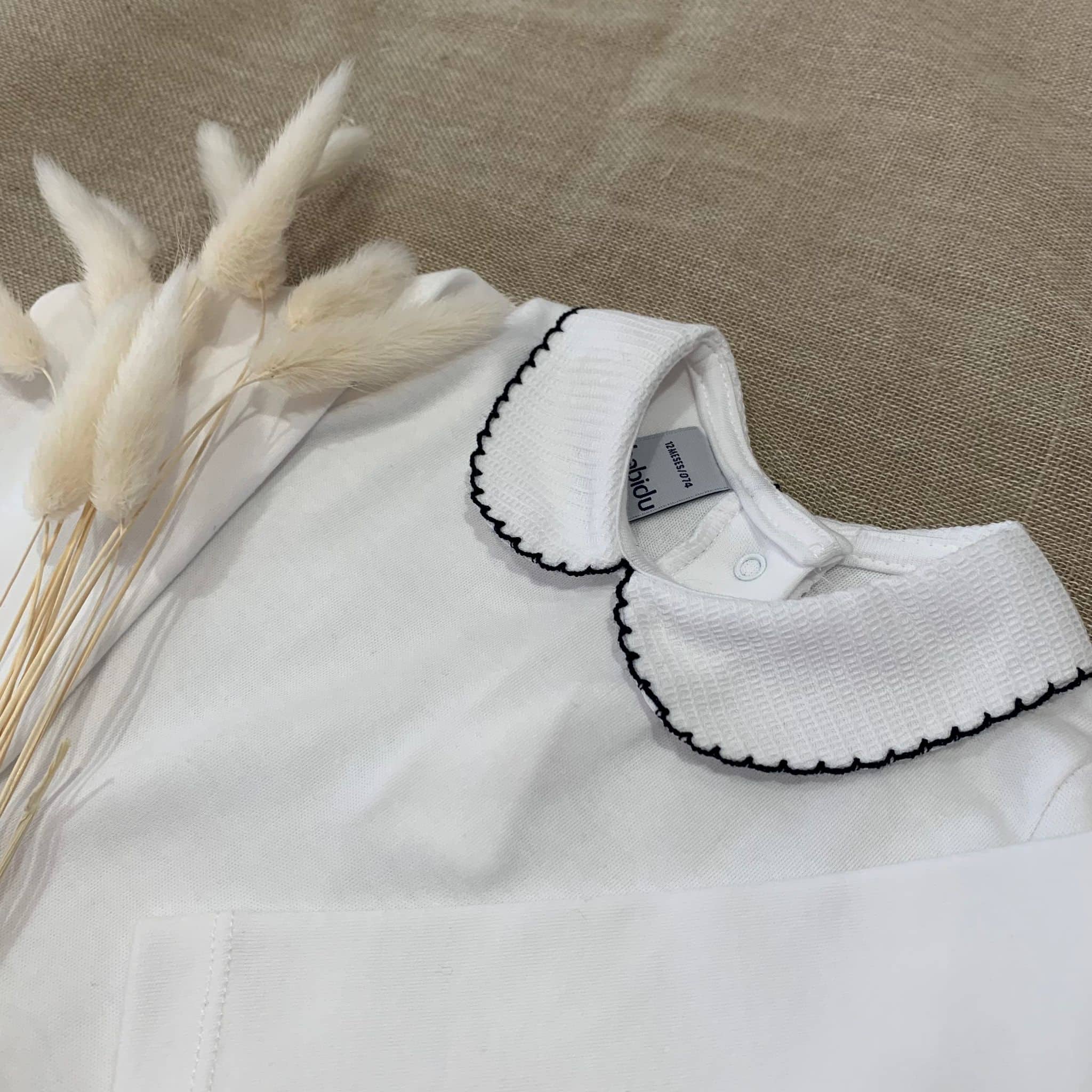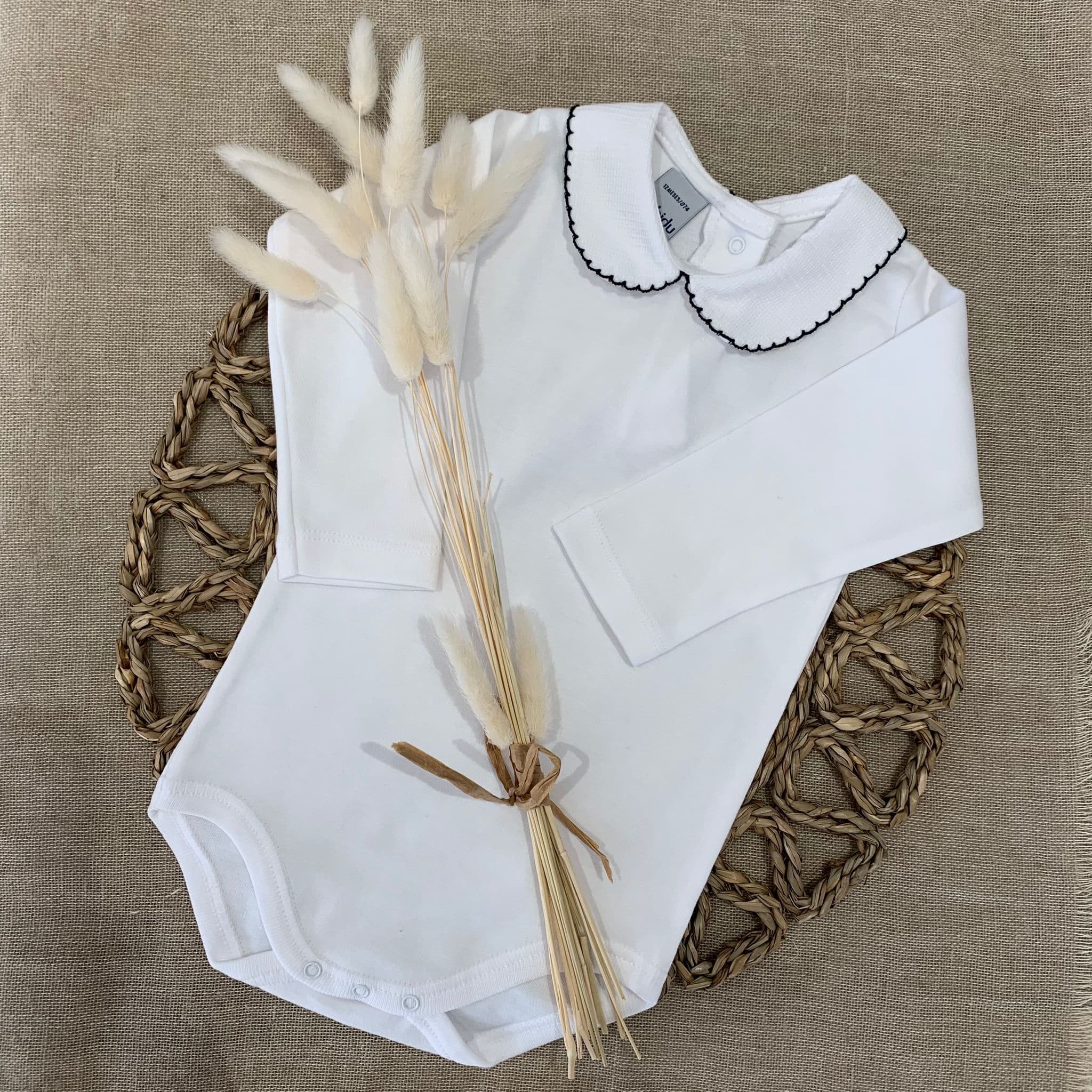 Babidu Unisex White Cotton Long Sleeve Navy Edge Bodysuit