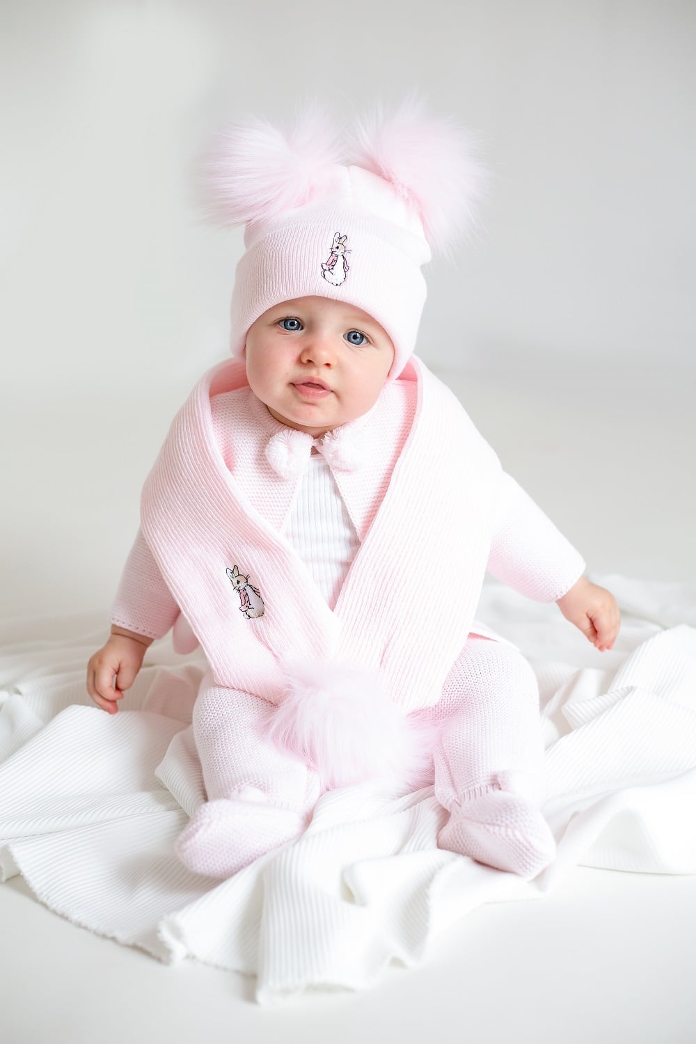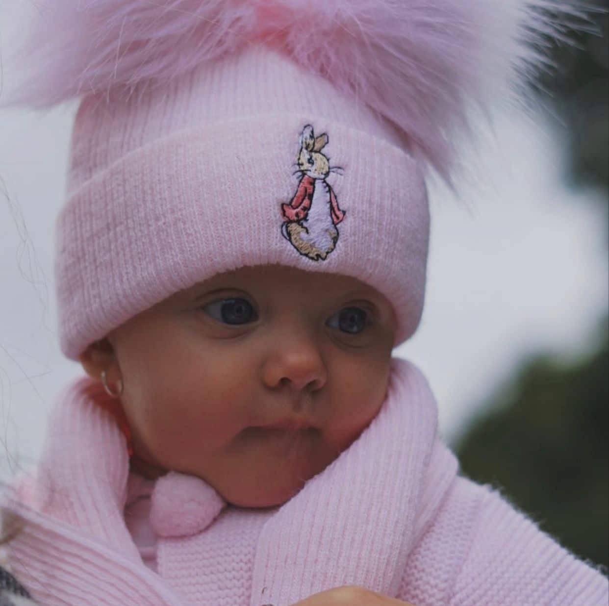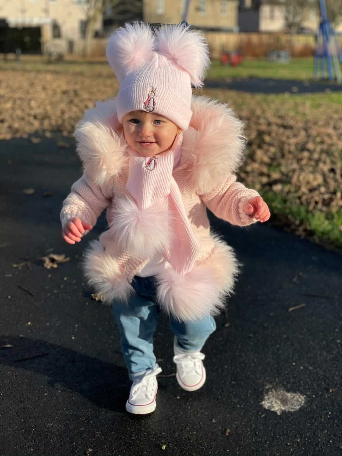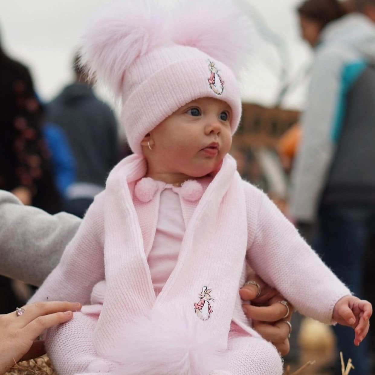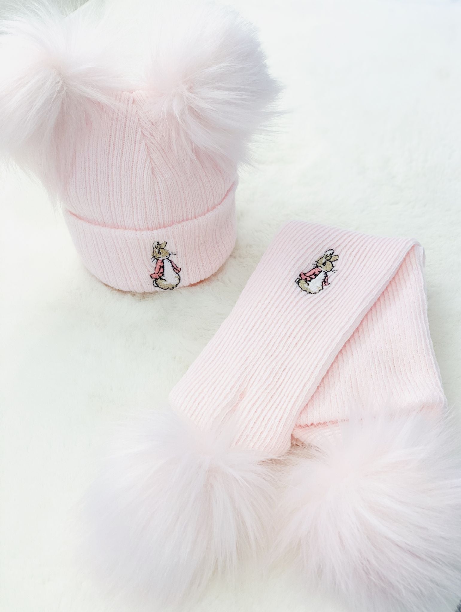 Beautiful Faux Furr Pom Hat & Matching scarf set, Sure to keep your little one warm.