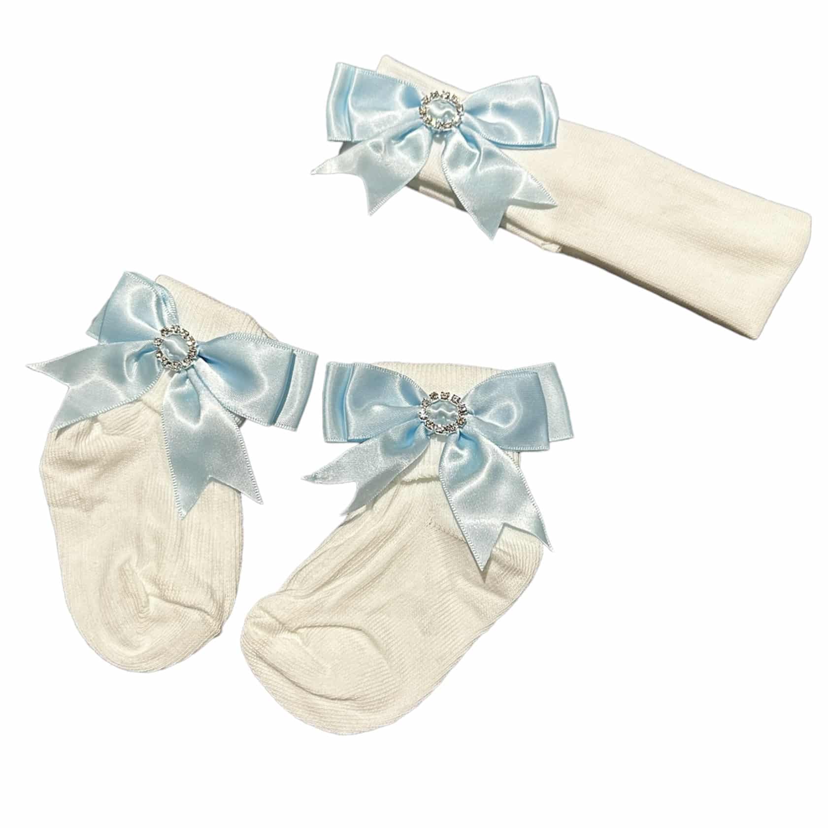 Baby Girls White Ankle Socks with a beautiful bow & Matching Headband 100% Cotton Made in the uk.