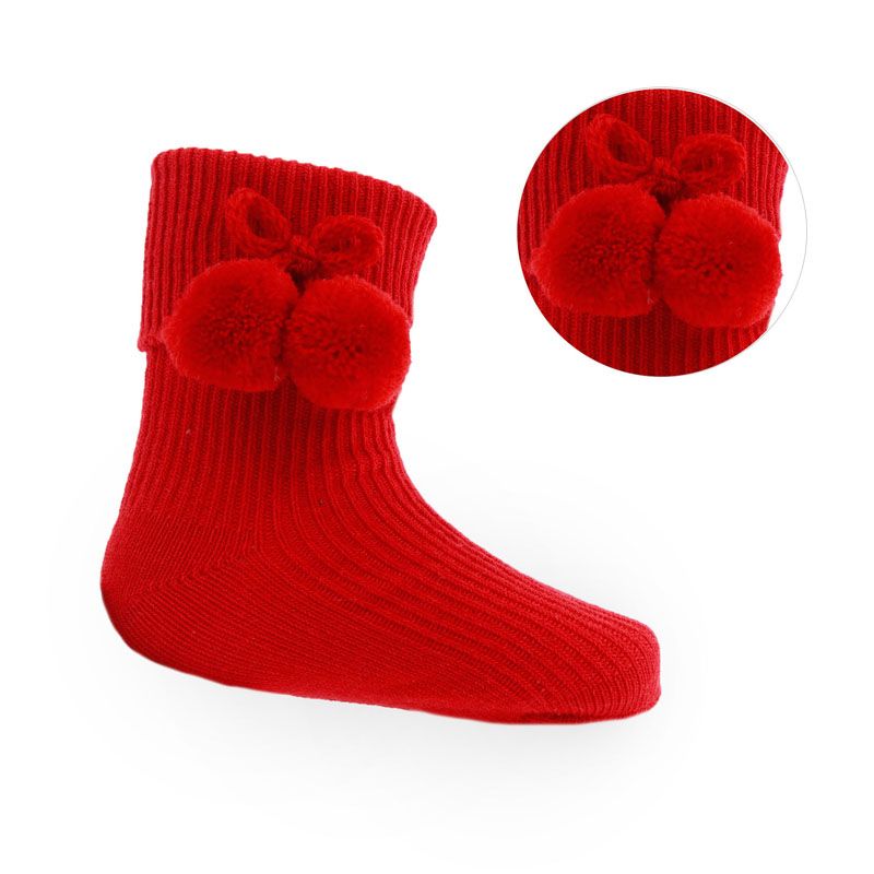 Red Unisex Baby Pom Pom Ankle Socks,