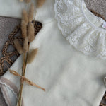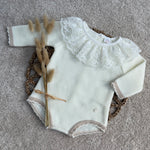 Dress your little one in timeless elegance with this beautiful Spanish baby outfit featuring delicate lace detailing for a truly luxurious look. This two-piece set includes a long-sleeved knitted top adorned with a statement lace collar and matching lace trim on the coordinated shorts. Perfect for special occasions, christenings, or simply adding charm to everyday wear.