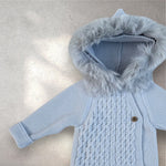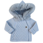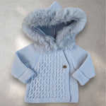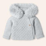 Wrap your little one in warmth and elegance with this beautifully crafted knitted jacket from Mac Ilusión. Designed in a timeless light grey tone, this piece features a luxuriously soft faux fur-trimmed hood, perfect for keeping your baby cozy on chilly days.