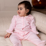 Practical and pretty, this all-in-one includes easy popper fastenings for quick changes and enclosed feet to keep tiny toes snug. Ideal for everyday wear or special occasions.