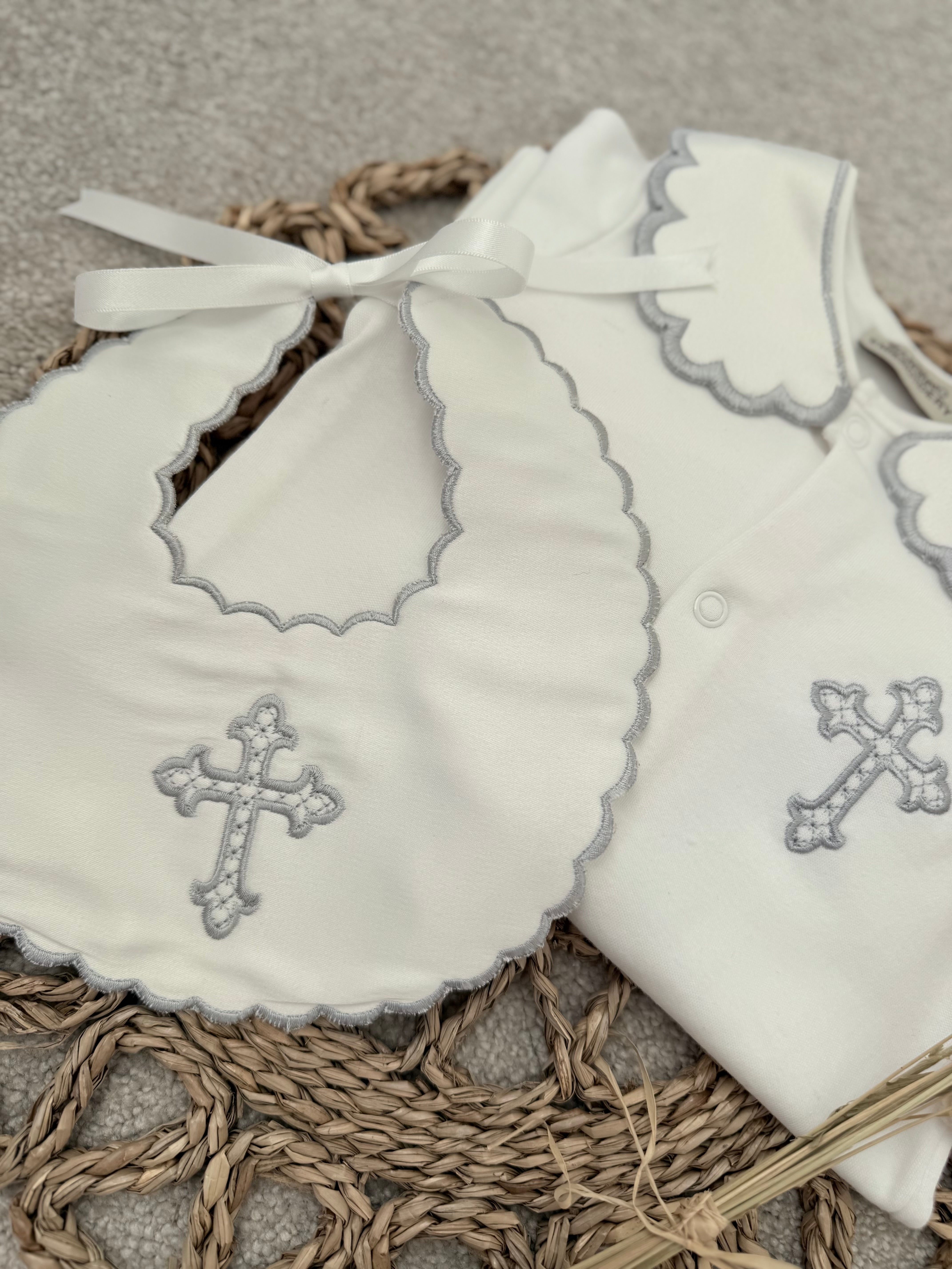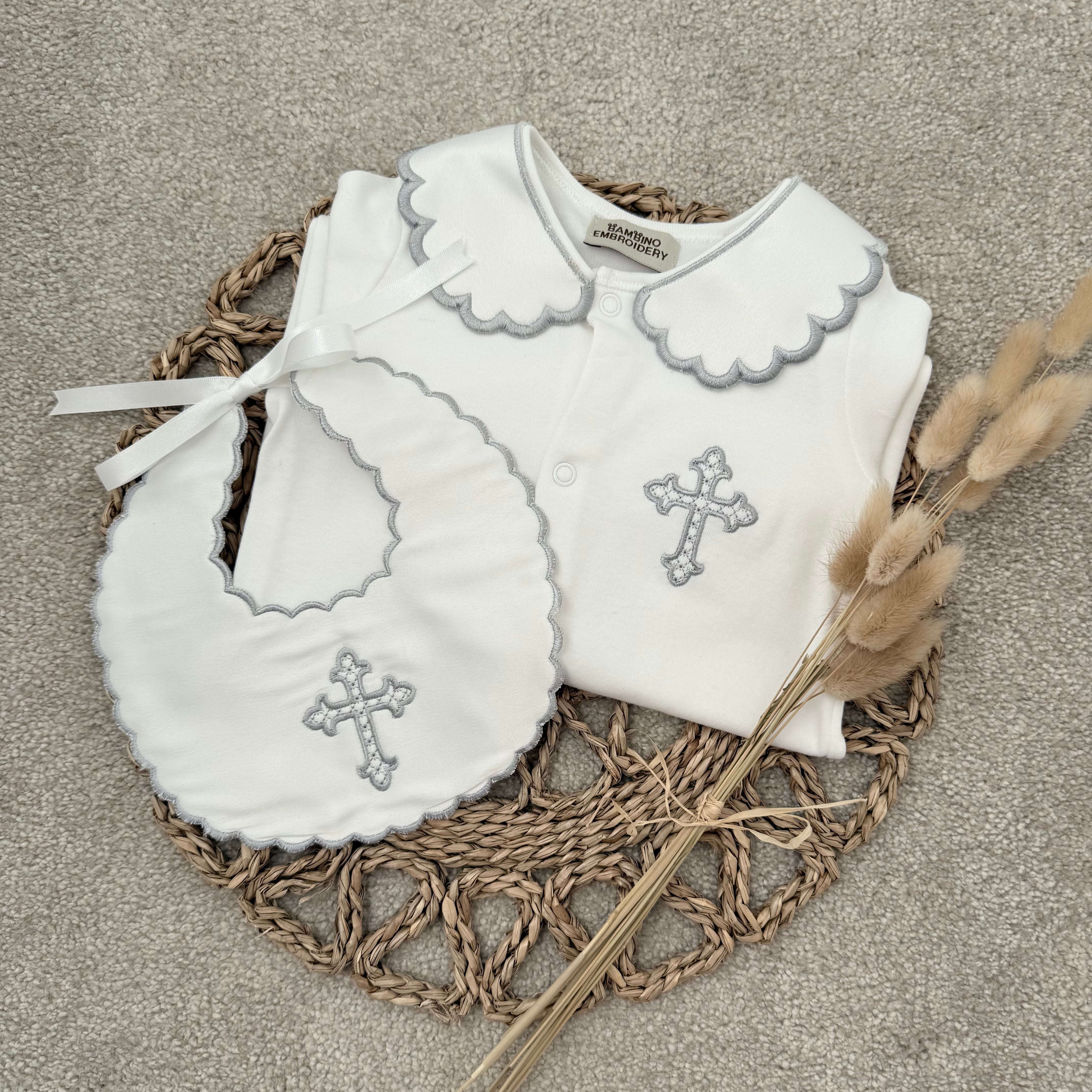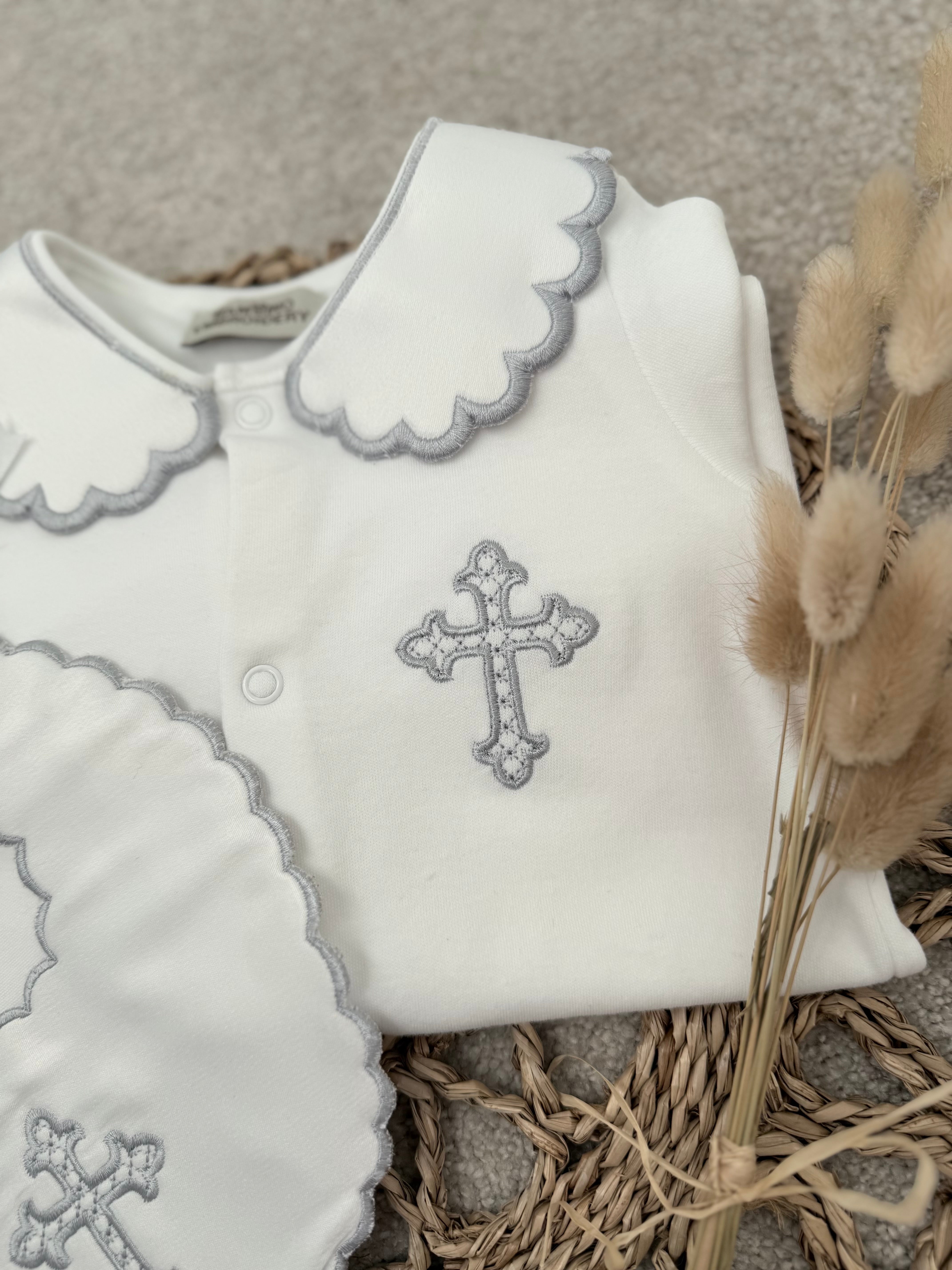 Baby's Christening day outfit, stand out on your special day in our personalised set.