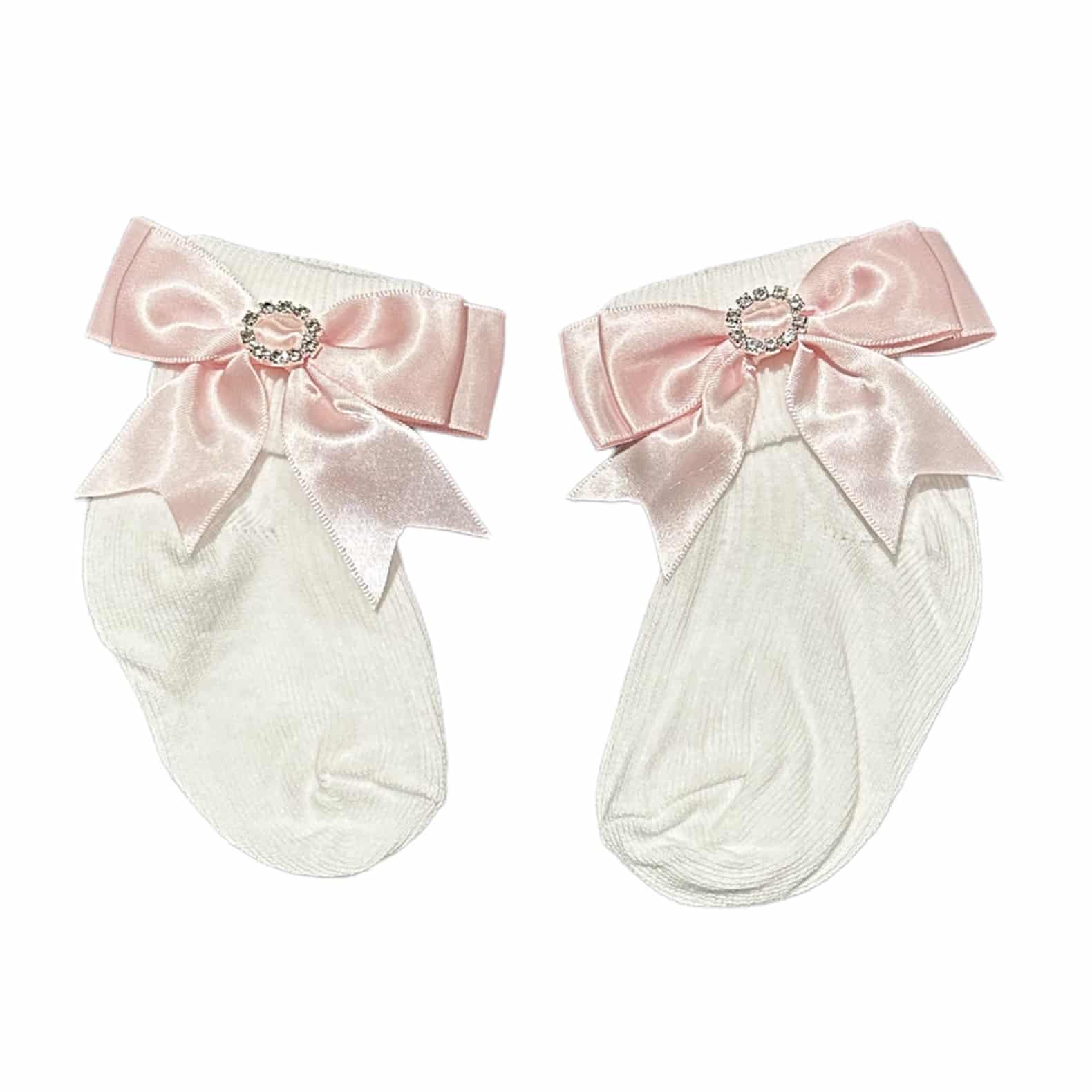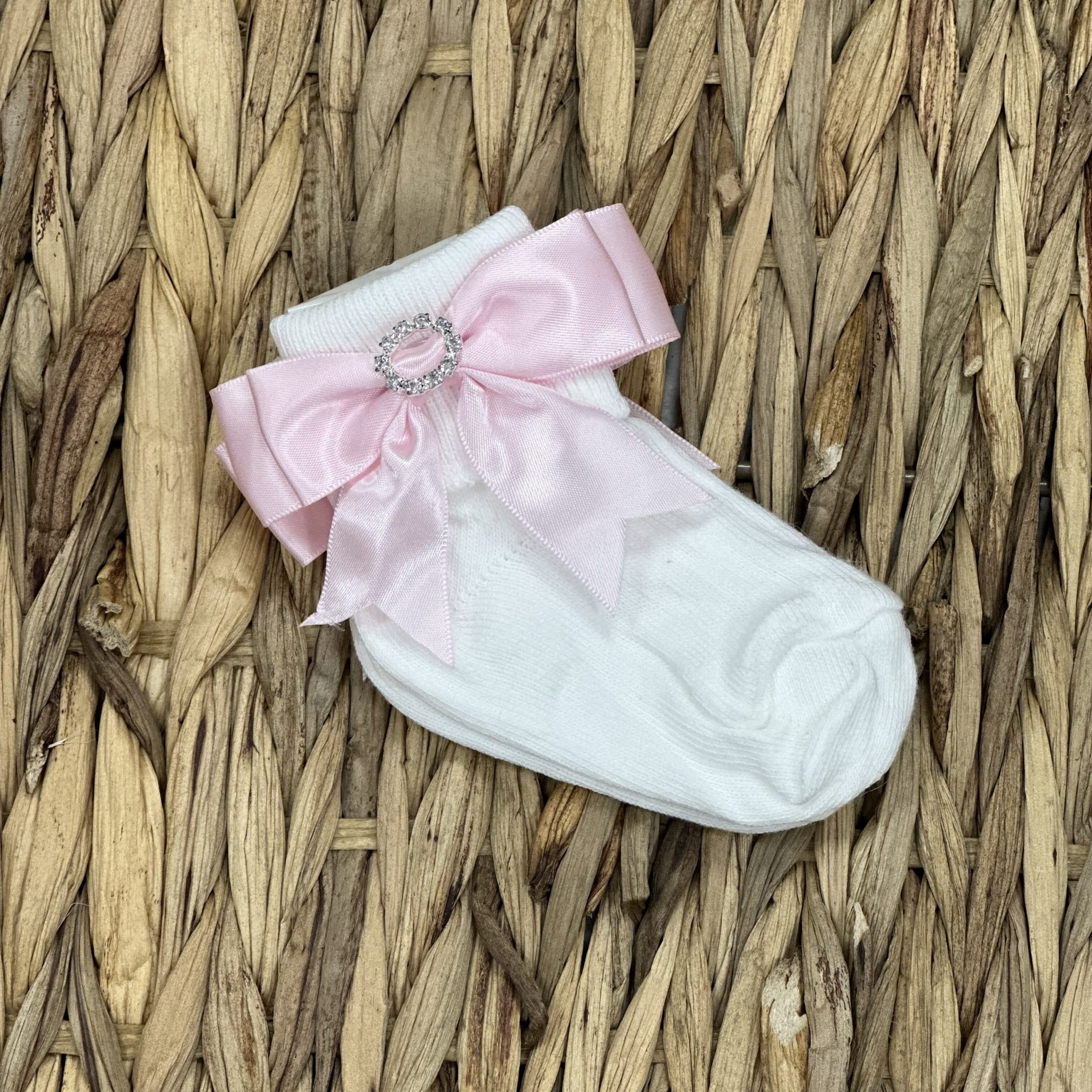 Beautiful little girls diamond bow ankle socks, from newborn to 6 years.