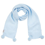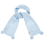 A blue knitted scarf for younger boys and girls by Sätila of Sweden. This sweet scarf in made from soft, knitted acrylic and has cute pom-pom trims.
