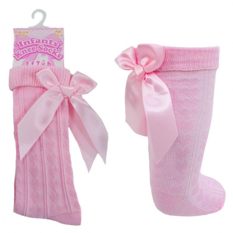 Soft Touch Girls Cotton Bow Knee Socks - Pink