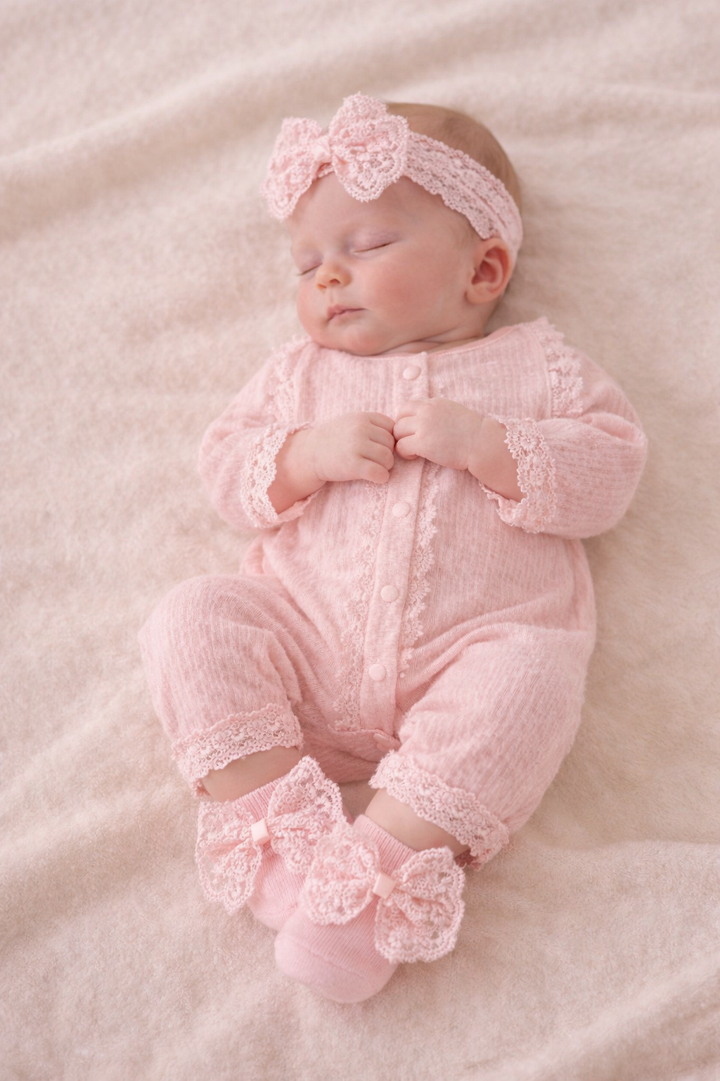 Dress your little princess in pure elegance with our beautiful baby girls pink headband and booties set. Designed with delicate detail and comfort in mind, this matching set is perfect for newborn photoshoots, baby showers, christenings, birthdays and everyday adorable outfits.