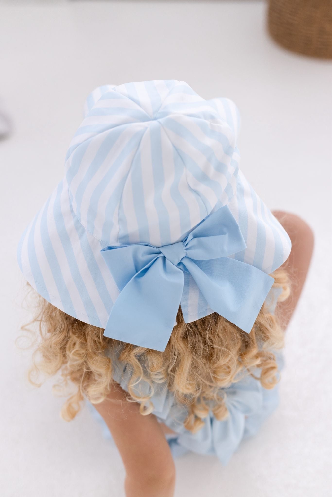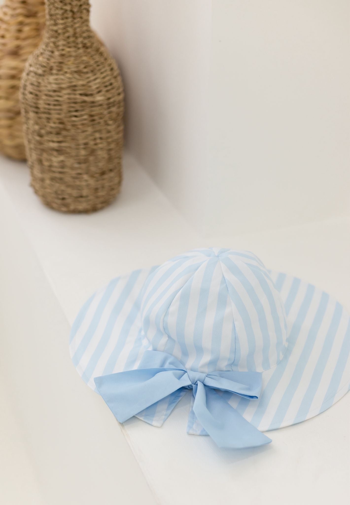 PRE-ORDER Girls Pastel Blue & White Stripe Summer Hat