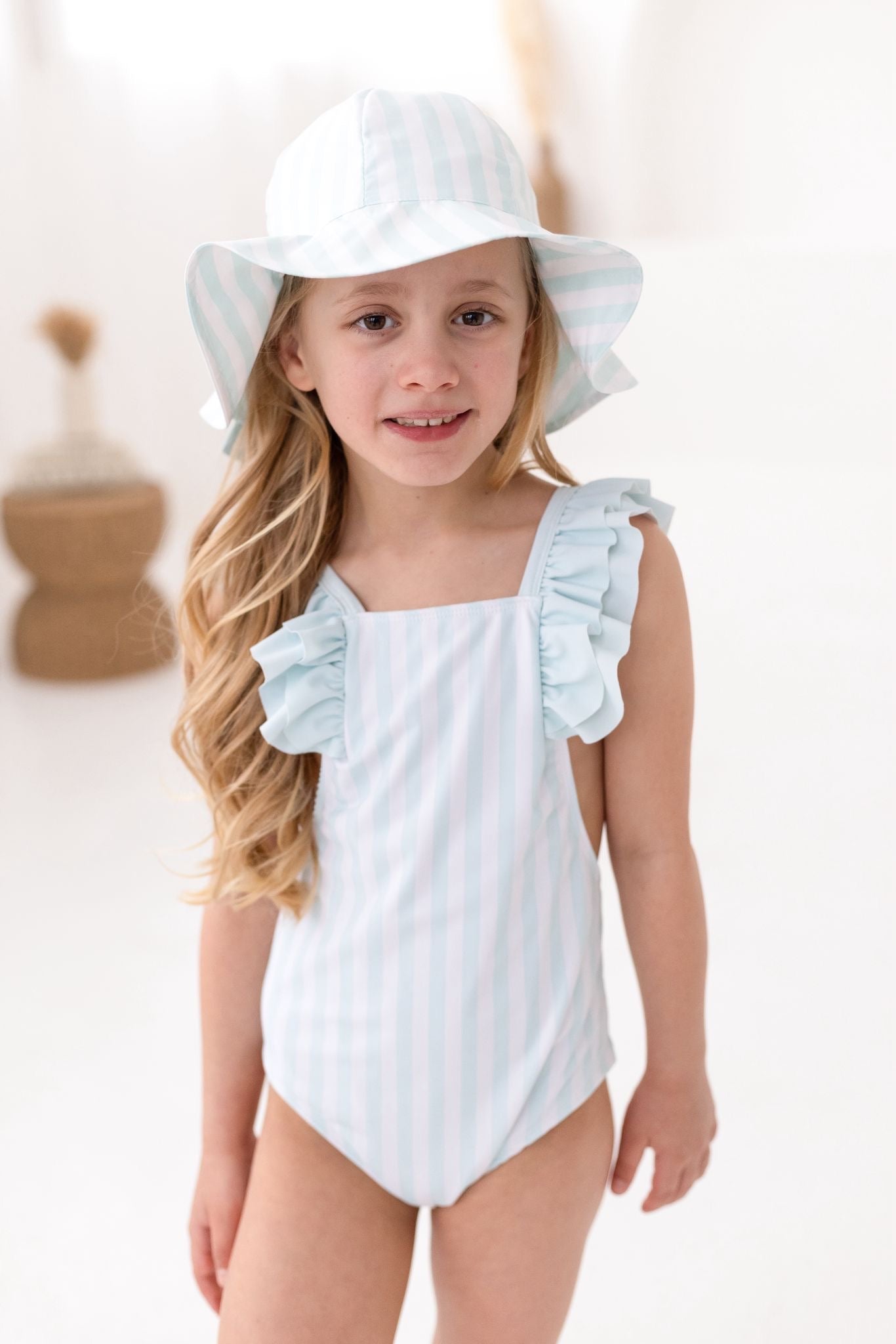 PRE-ORDER Girls Pastel Green & White Stripe Summer Hat