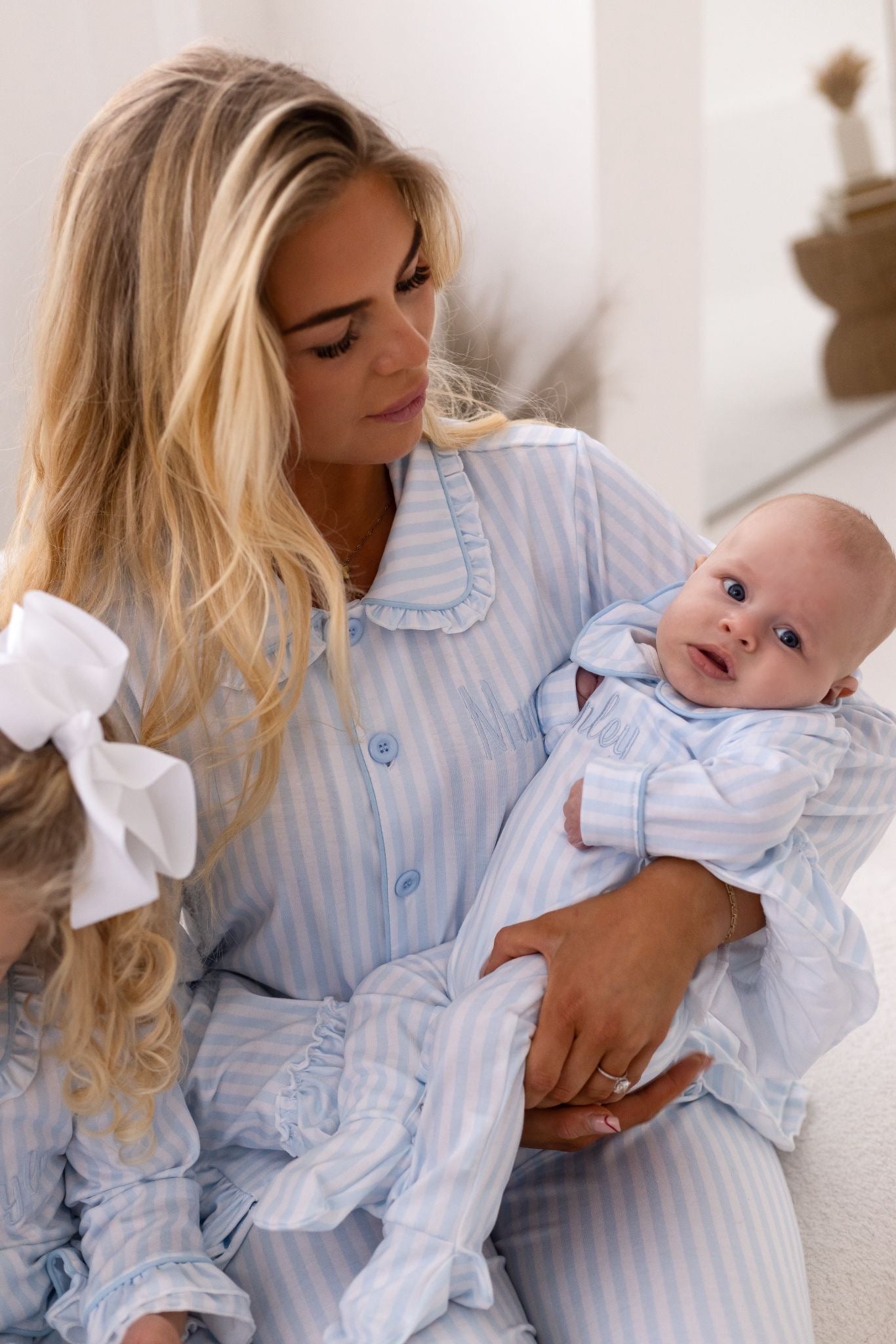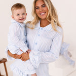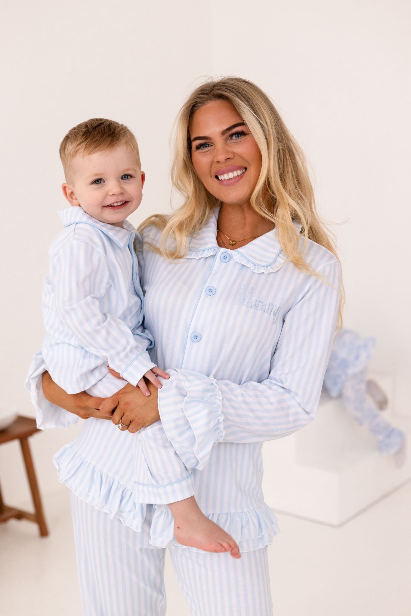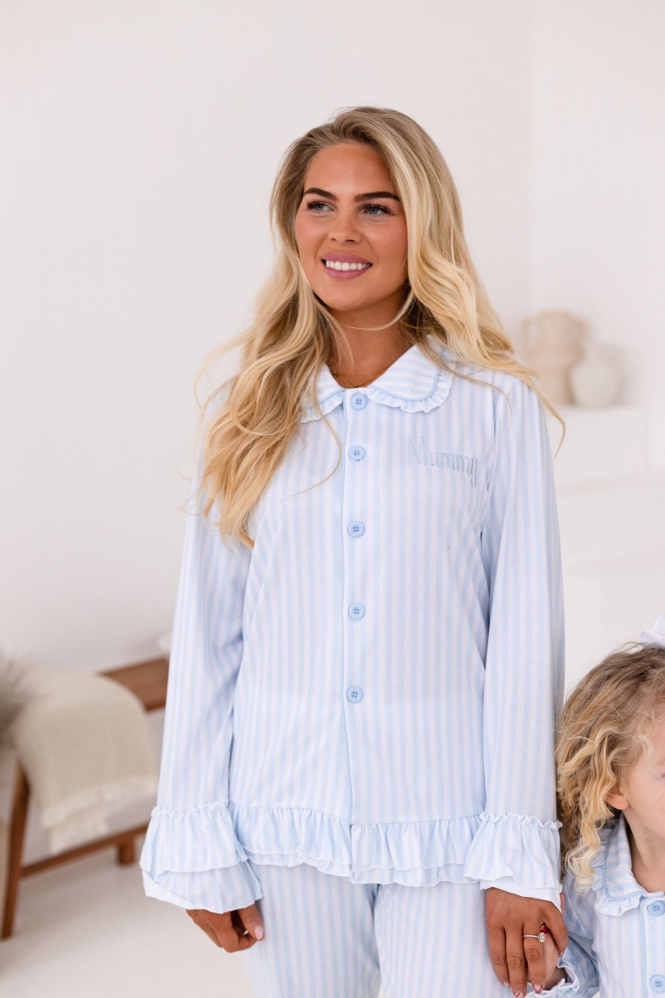 PRE-ORDER Woman's Mummy & Me Blue Stripe Matching Pyjamas Set - Luxury Nightwear
