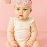 The soft knitted booties feature stunning oversized 3D floral lace bows with a sweet satin ribbon centre, giving the perfect mix of comfort and luxury. The matching stretch lace headband completes the look with a lightweight, gentle fit that’s kind to your baby’s skin.
