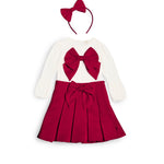 Caramelo Kids Girls Red & White Pleated Skirt Set with Bows
