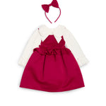 Caramelo Kids Girls Red & White Cotton Dress Set with Bow Hairband