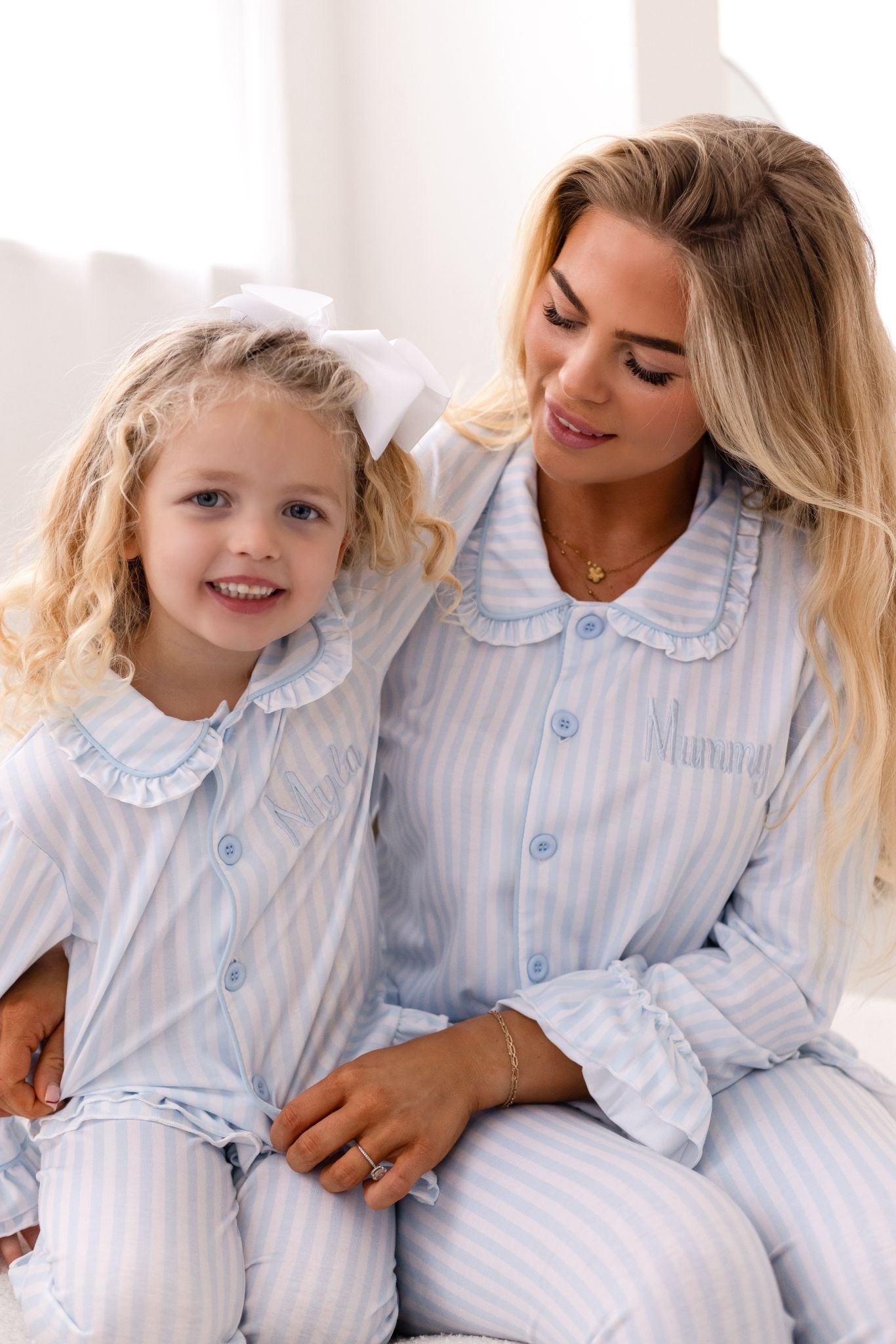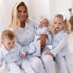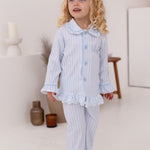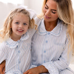 PRE-ORDER Girls Mummy & Me Blue Stripe Pyjamas Set - Frill Cuff & Ankle Detail