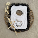 Baby girls Embroidered Rocking Horse bib with a beautiful lace trim.