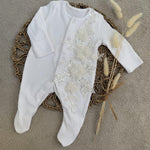 Baby Girls White Sparkle Luxe Baby Grow