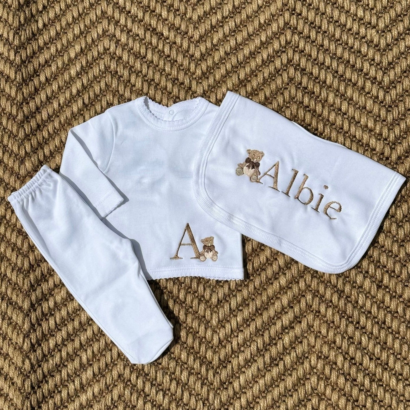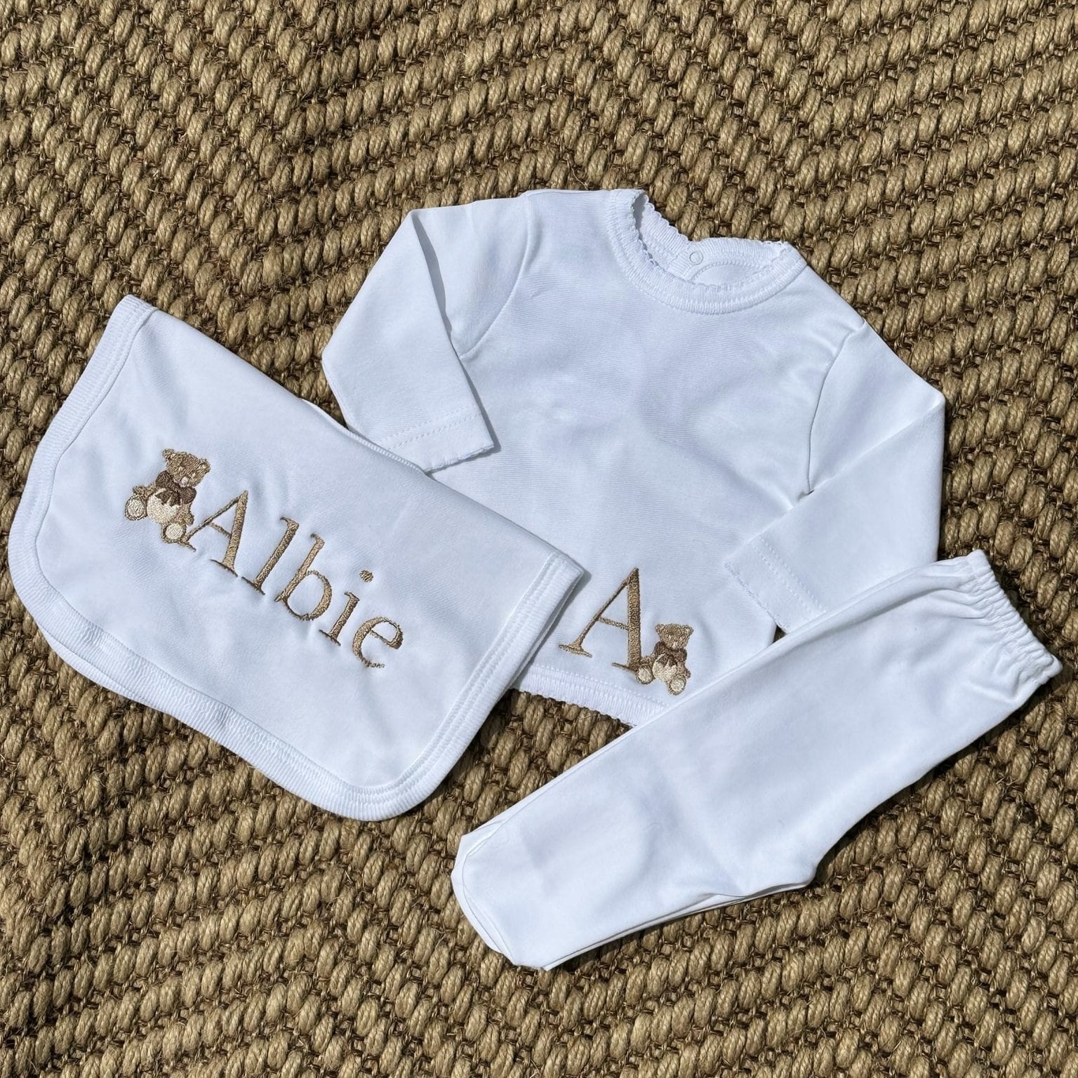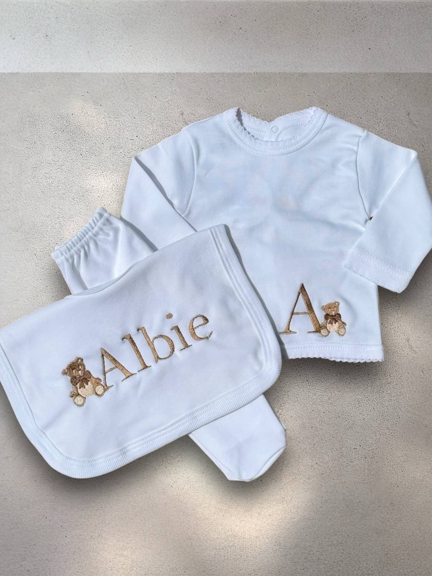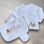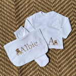 Babys Beige Cotton Personalised 3 Piece Outfit