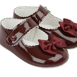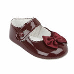 Baypods Patent Pram Shoes With Bow - Burgundy