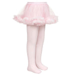 Younger girls pink tights with an attached tutu skirt by Caramelo Kids. Soft and comfortable, the tights are made in a stretchy cotton blend and the tulle skirt is gathered with a pretty ruffled trim.