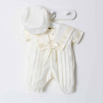 Baby boys ivory sailor style christening romper & hat, the perfect christening outfit for your baby boys special day.