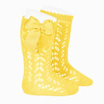 Condor Socks Girls Condor Perle Openwork Knee Sock With Bow - Lemon