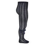 Condor Tights Girls Condor Perle Openwork Tights With Bow - Navy