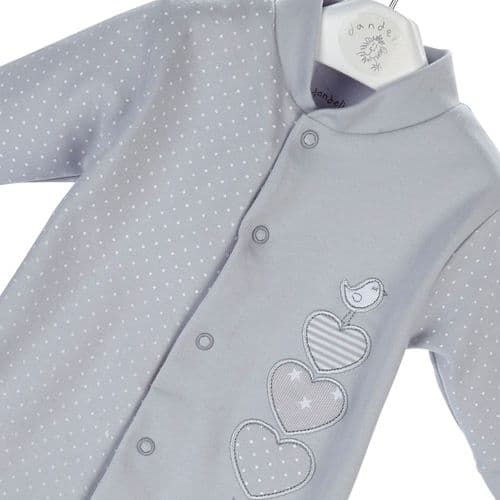 Dandelion Triple Hearts Cotton Sleepsuit - Grey