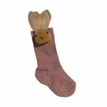 Meia Pata Girls Pink Knee Socks With Felt Rabbit