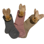 Meia Pata Girls Grey Knee Socks With Felt Rabbit