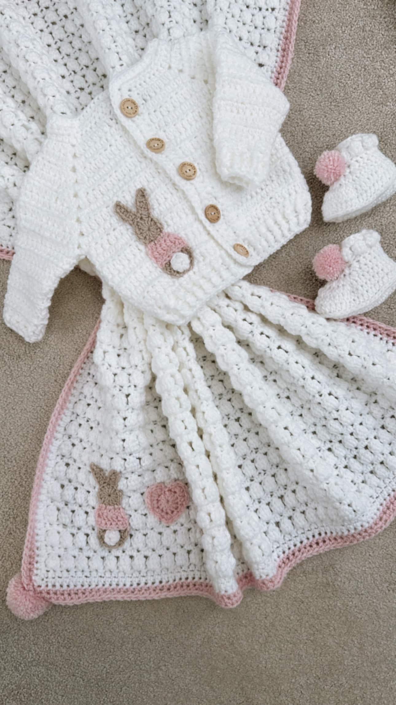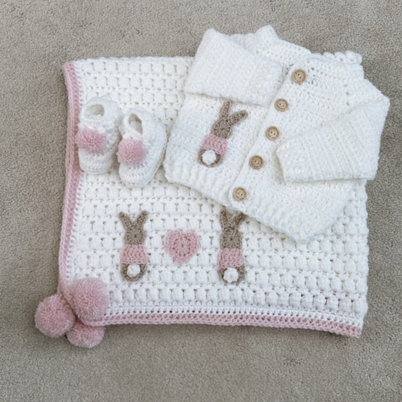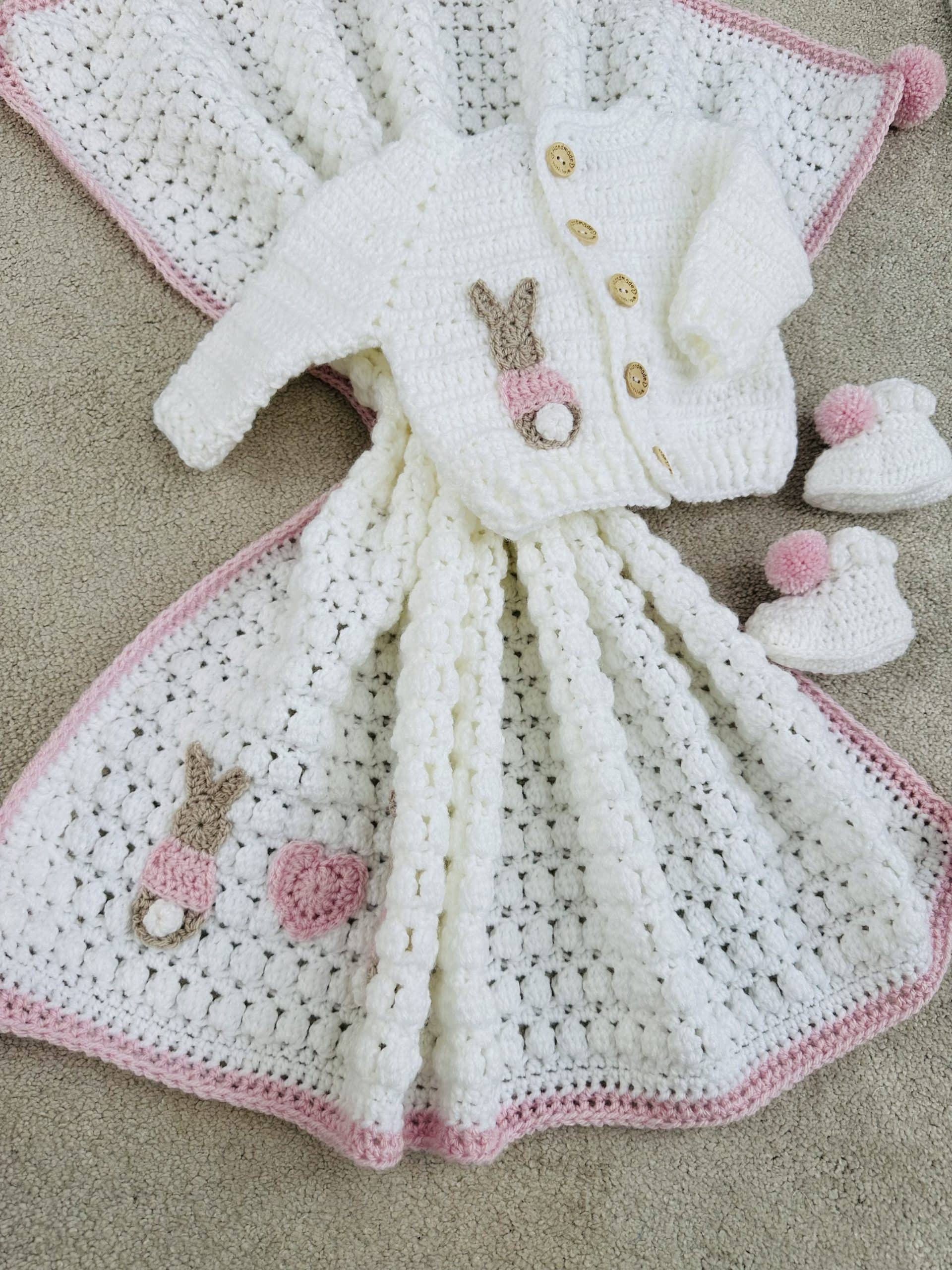 Flopsy Rabbit Handmade Cardigan and Blanket Set
