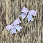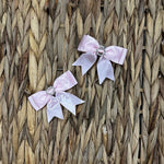 Beautiful little girls hair clip, Satin Double bow with diamonds on. These are on a Rectangle Snap Clip. Twin pack of 2, 25mm Bow.