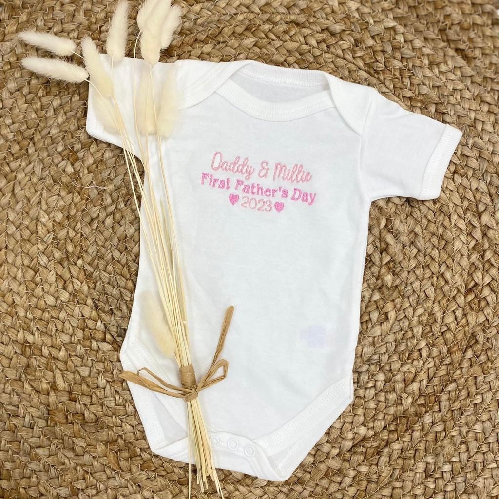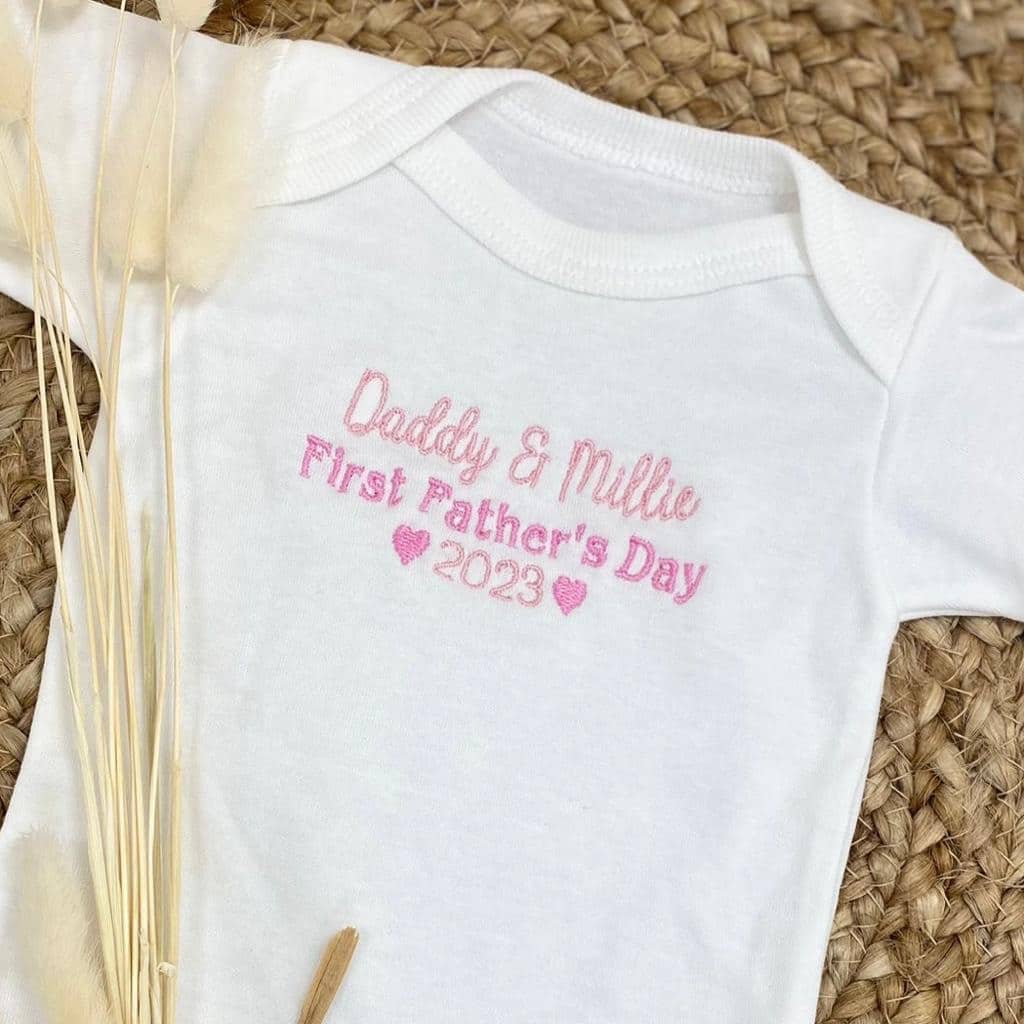 White cotton vest embroidered with Fathers Day message.