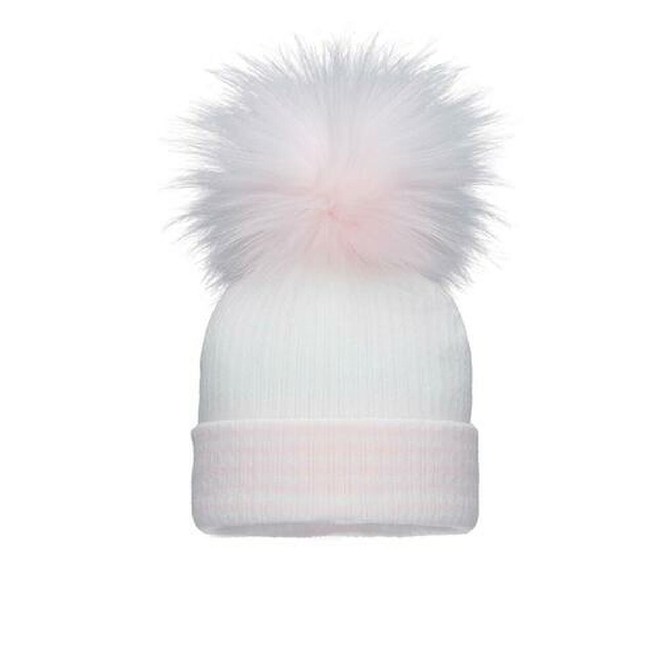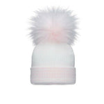 White & Pink Stripe Single Pom Hat