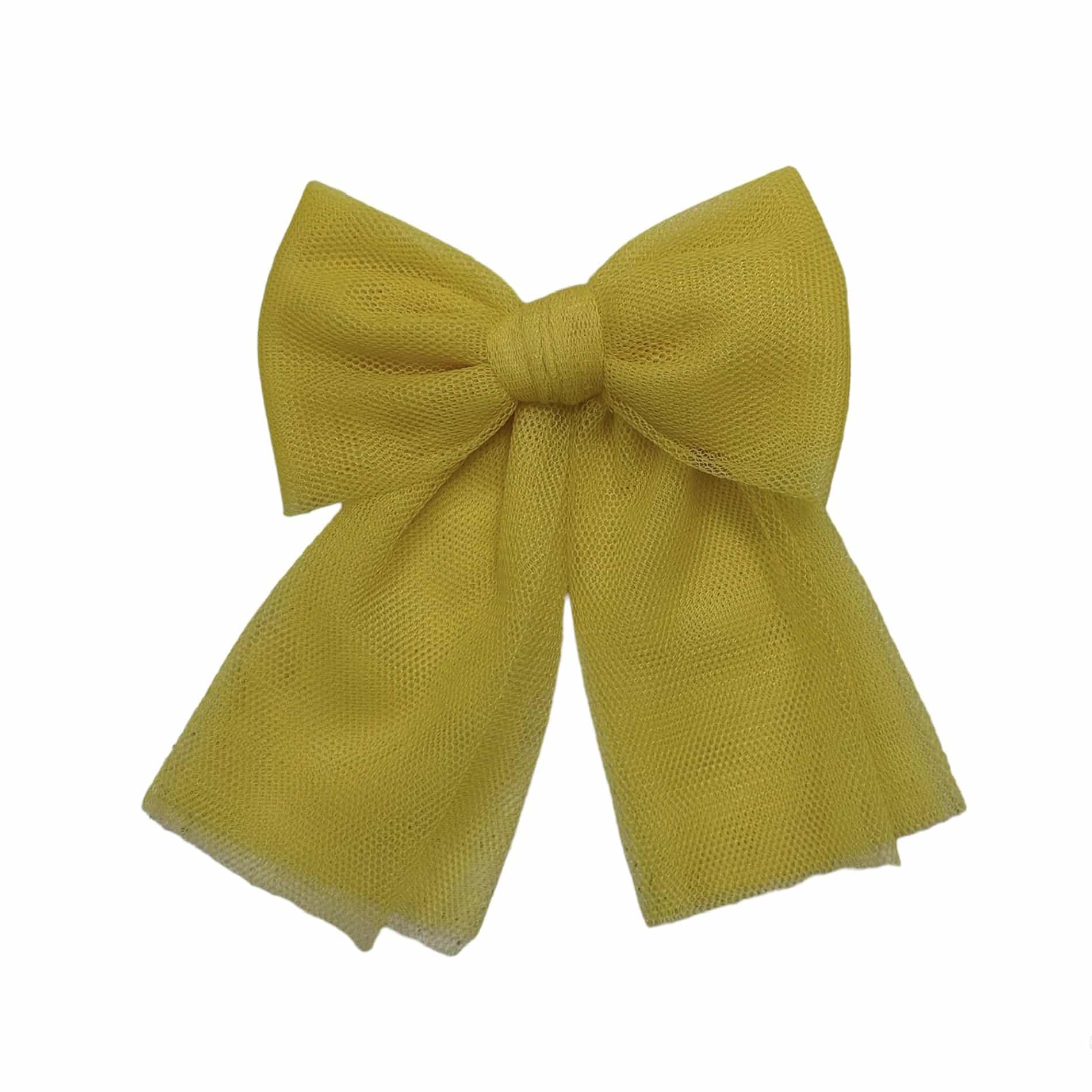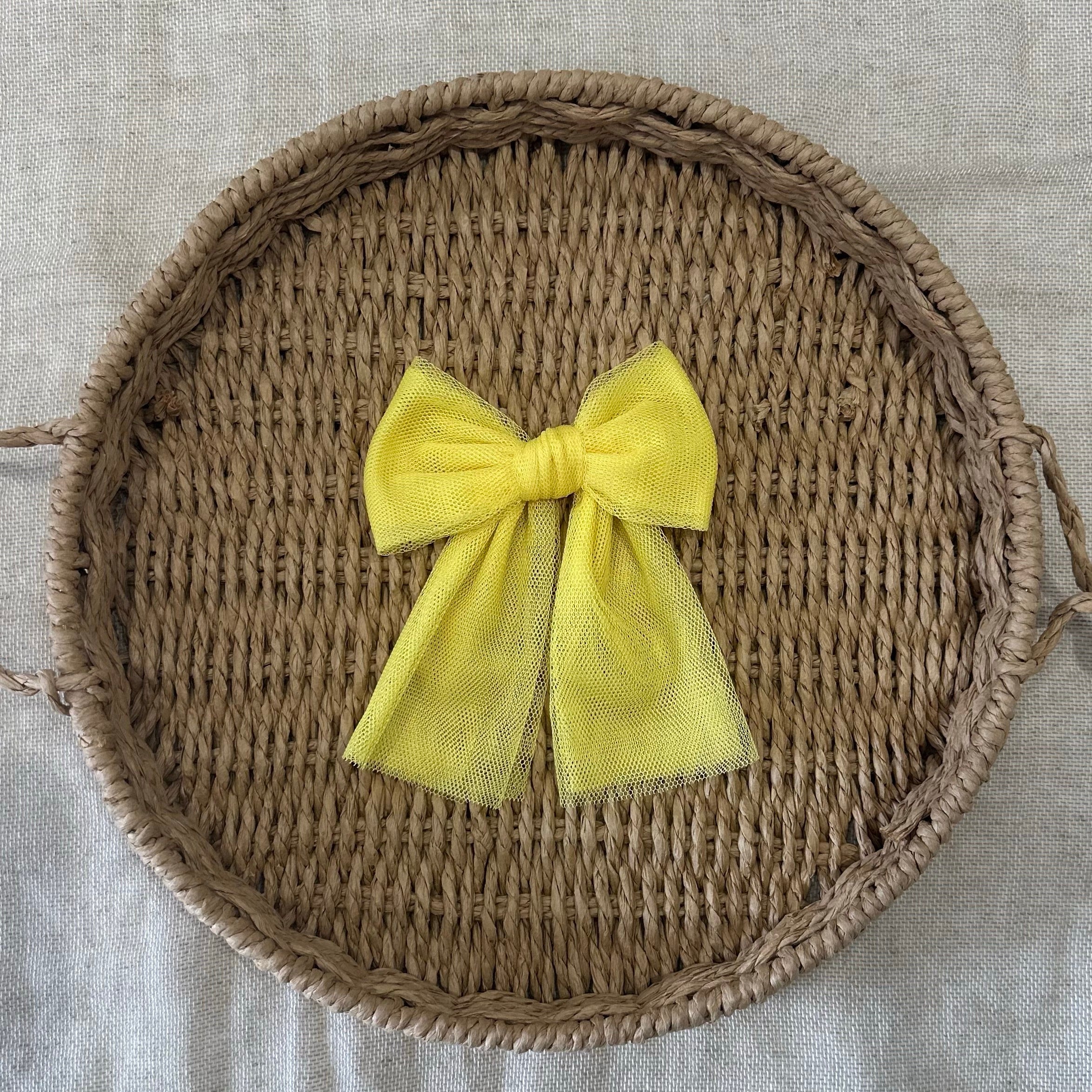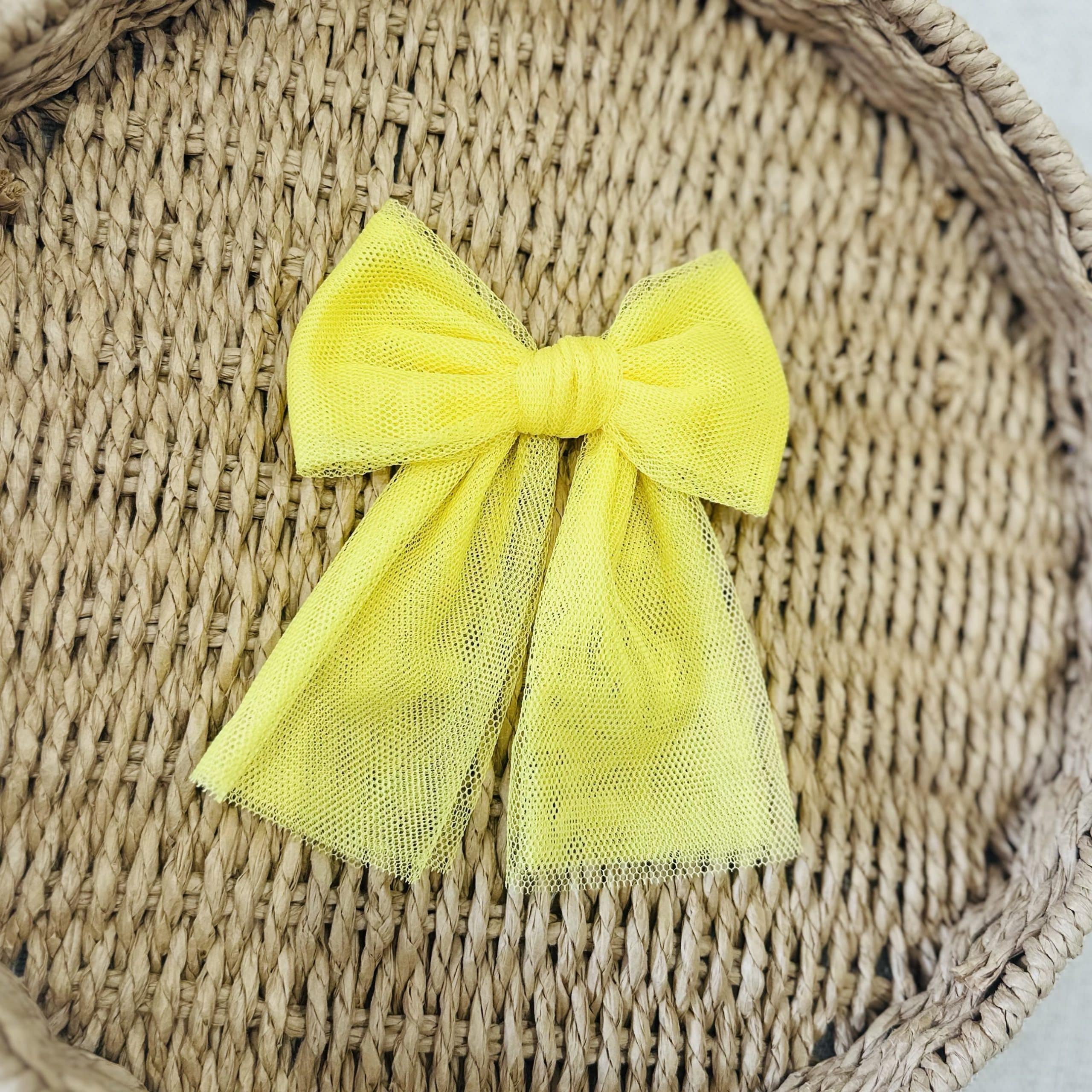 Lemon Girls tulle Bow hair Clip very pretty. This has a metal alligator clip on.