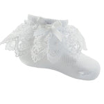 Soft Touch White Ankle Socks With Rose Lace & Bow