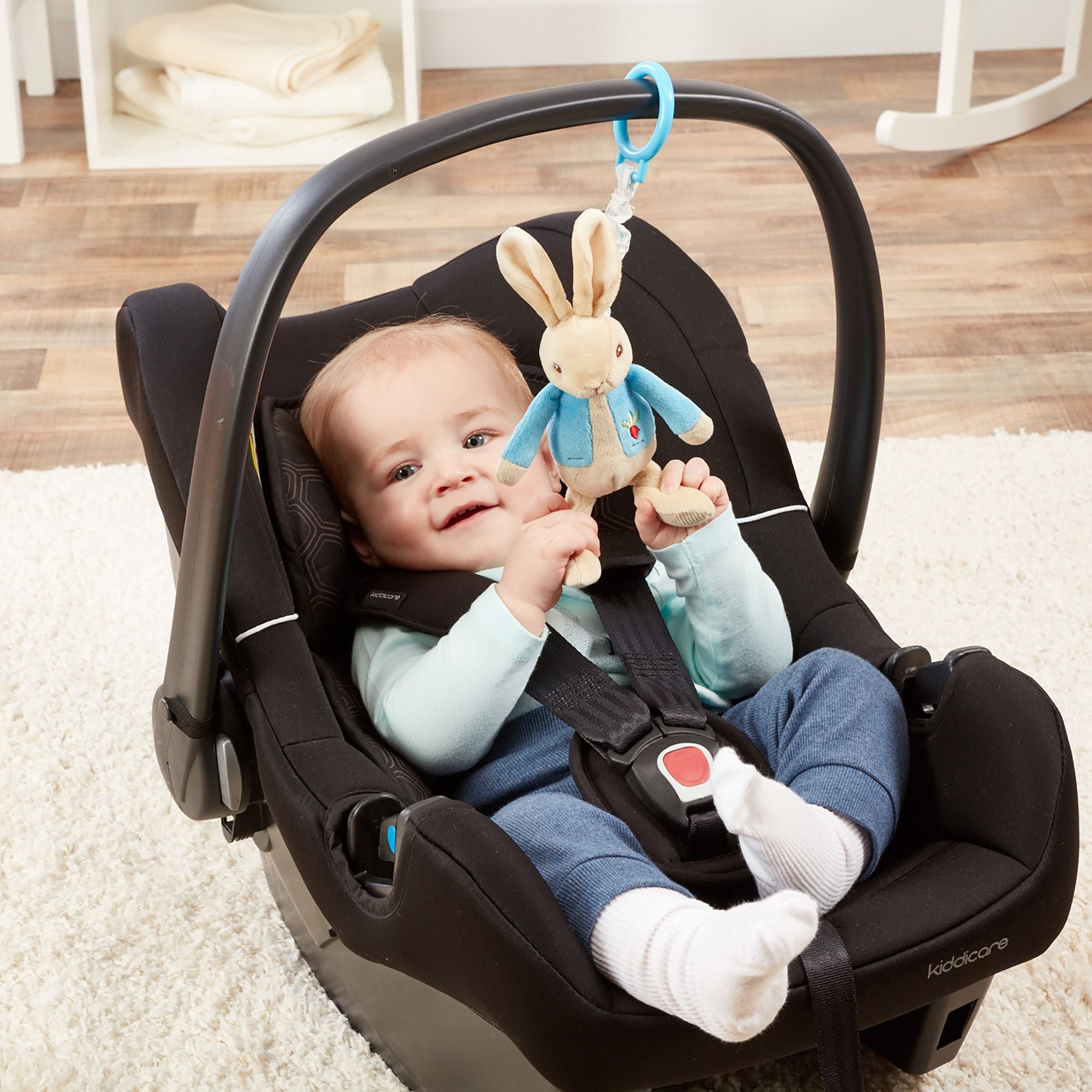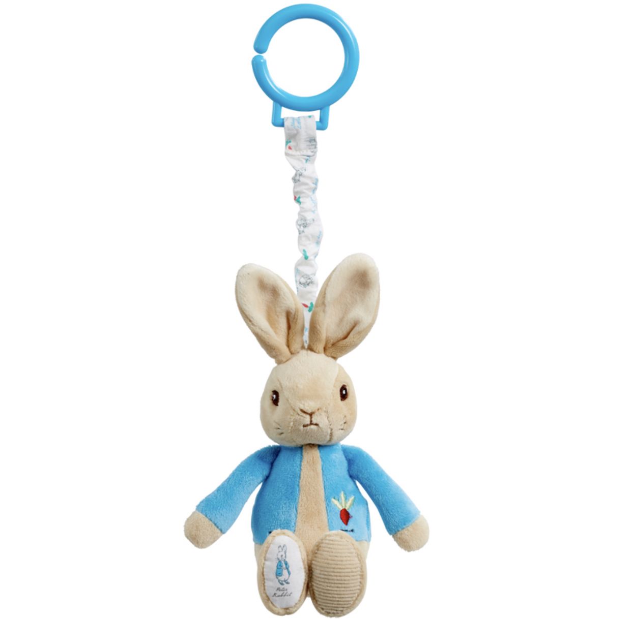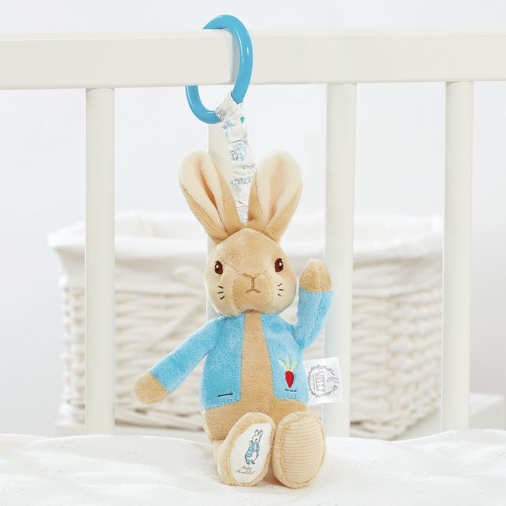From the classic Beatrix Potter books, this Peter Rabbit attachable toy is made from premium soft plush to ensure it is as gentle against babies skin as can be. The sturdy plastic clip enables Peter to be attached to baby's cot or to the baby's pram for on the go fun. Enjoy playtime more by pulling the retractable cord and watching Peter Rabbit jiggle his way up.