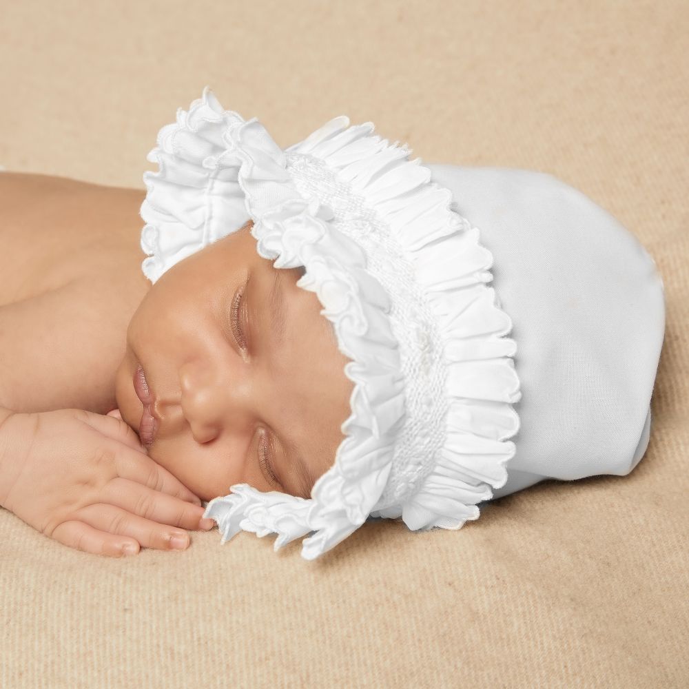 Sarah Louise White Hand Socked Bonnet With Flowers