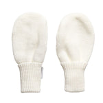 Soft and stretchy, White knitted mittens for baby girls by Sätila of Sweden, with turn-over ribbed cuffs.