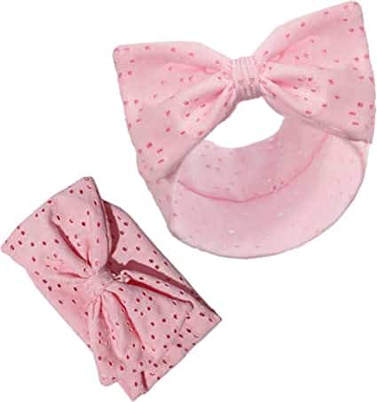 Soft Touch Baby Girls Broaderie Anglaise Headband with Matching Bow -Pink