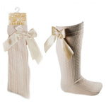 Soft Touch Girls Cotton Bow Knee Socks - Beige
