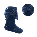 Soft Touch Pelerine Knee Socks With Bow - Navy
