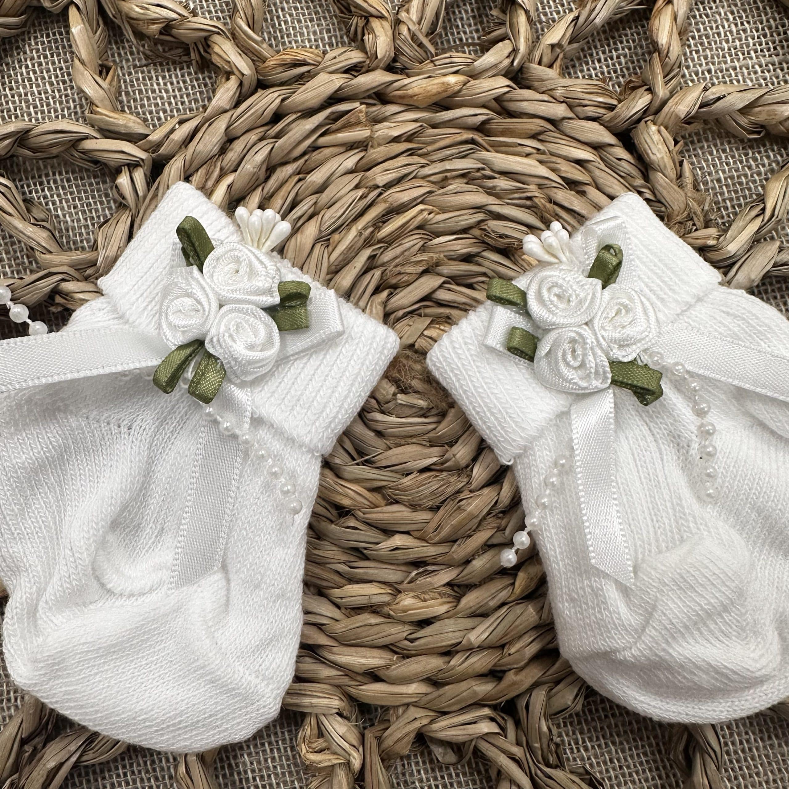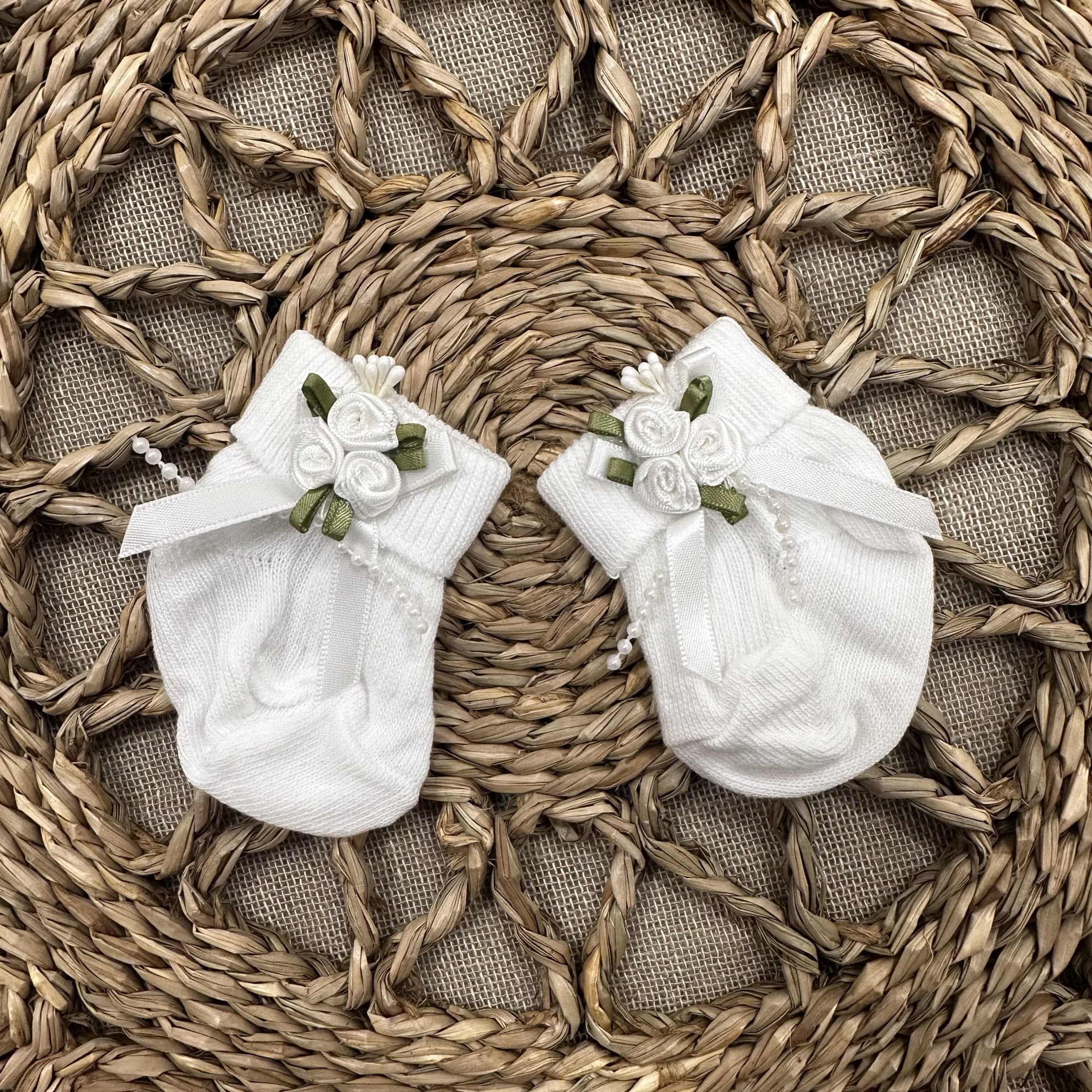 Soft Touch Premature Girls Flower Ankle Socks - White