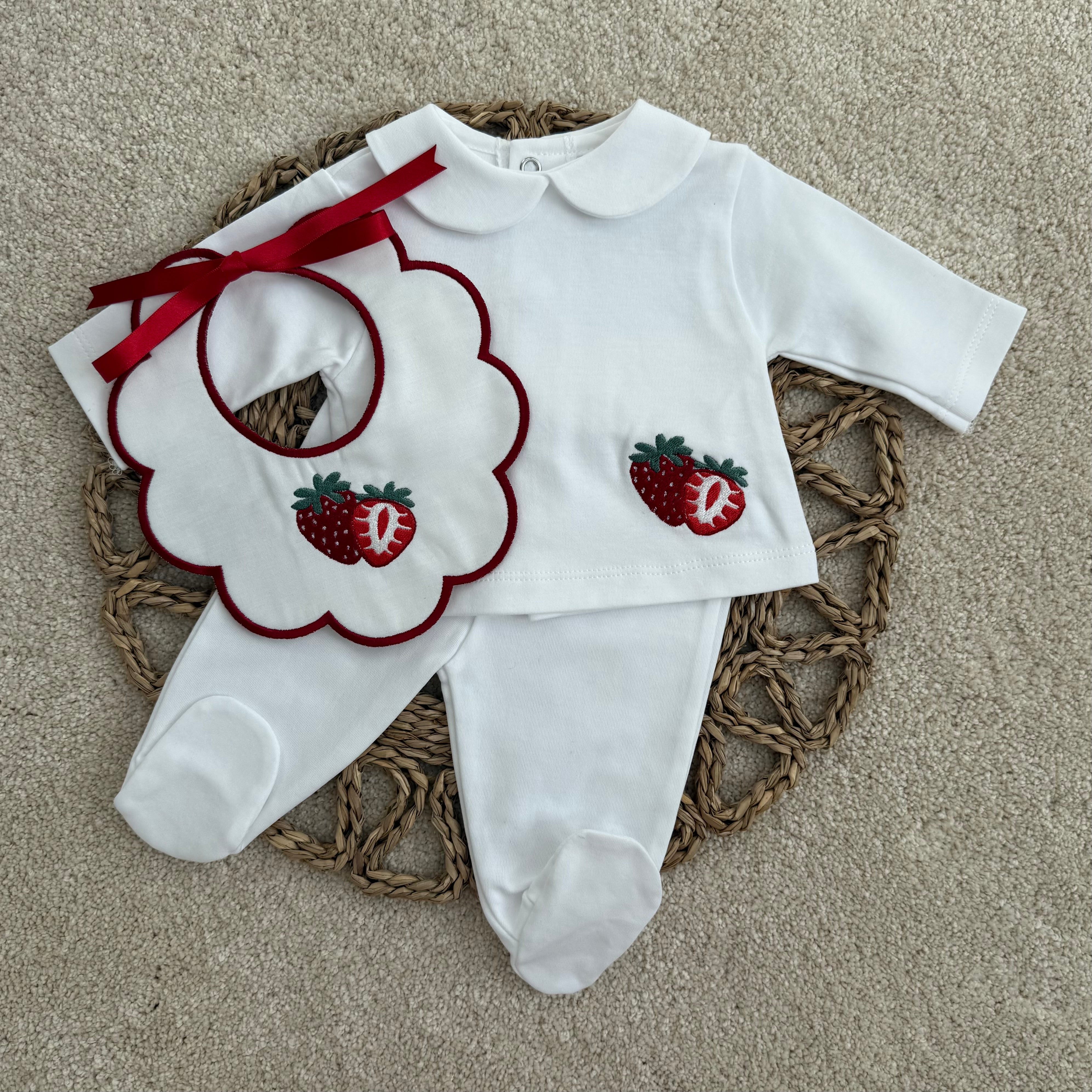 Personalised White Strawberry Two Piece Set with Peter Pan Collar | Coming Home Outfit