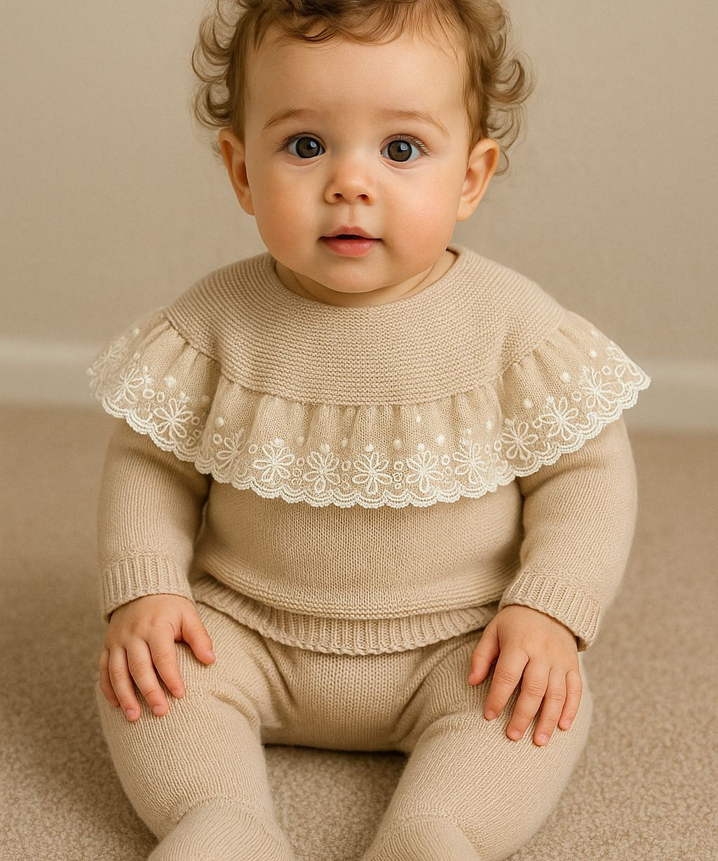 Baby Girls Beige Lacey Knitted 3 Piece Set