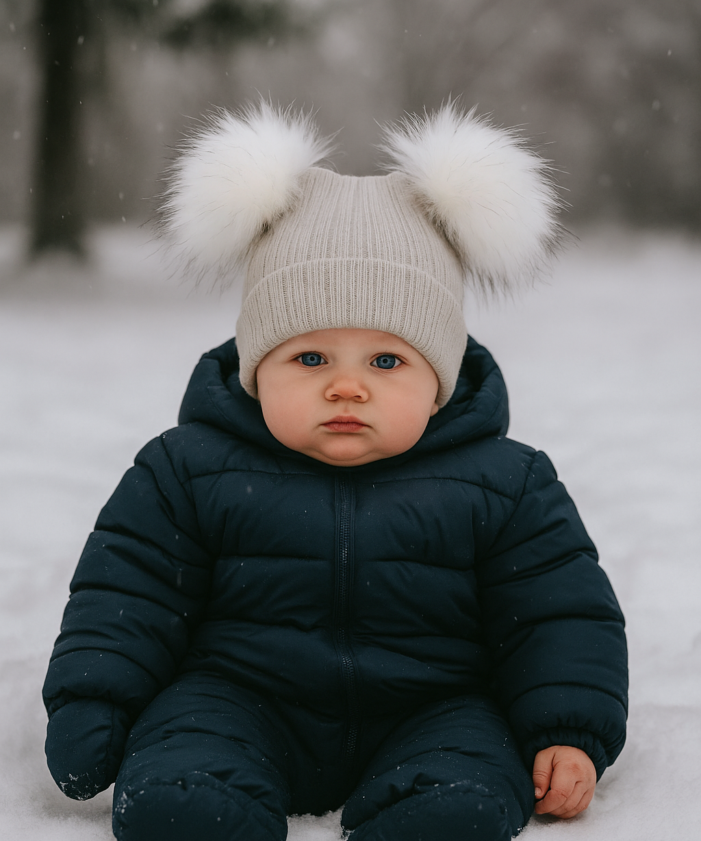 Baby's Beige Double Pom Pom Hat