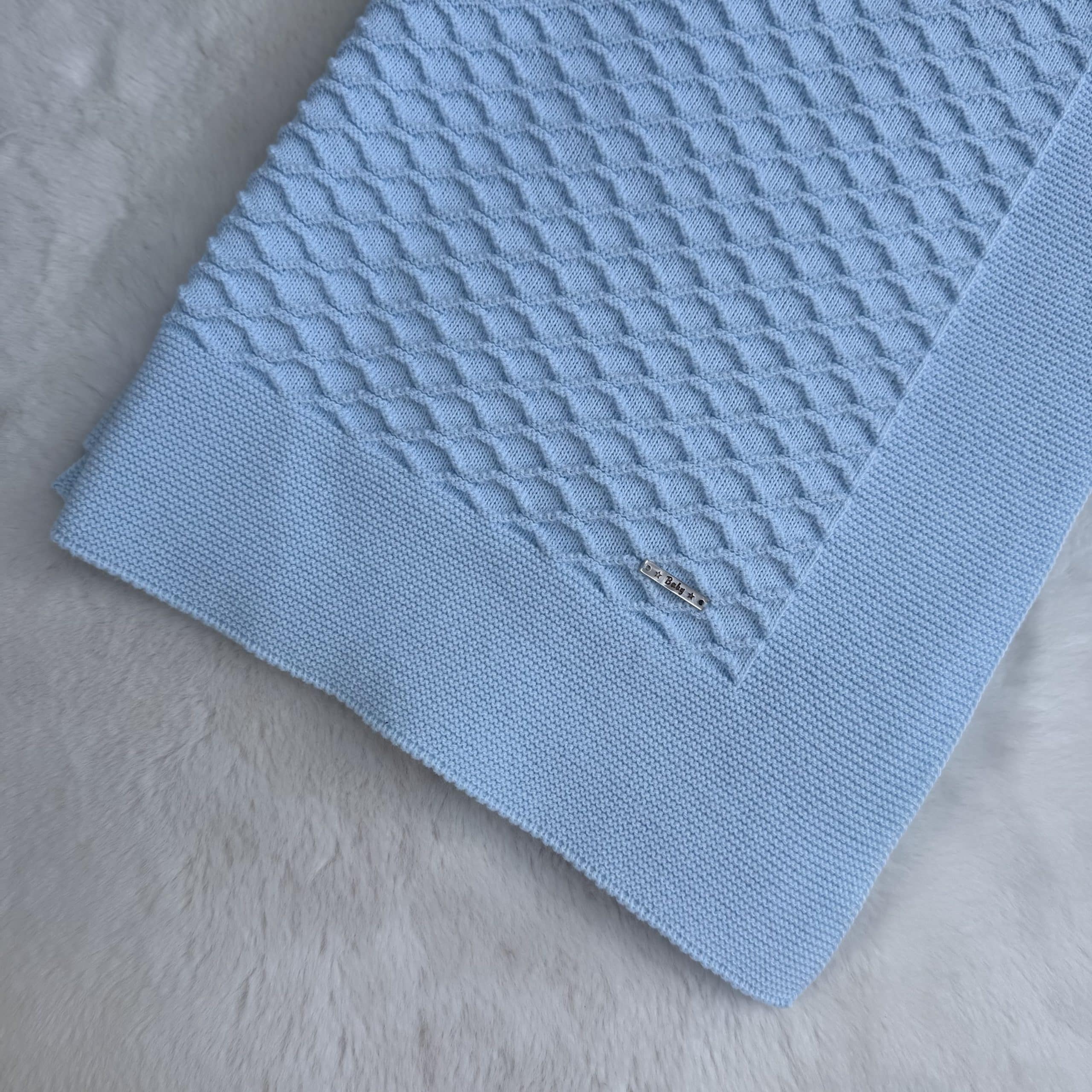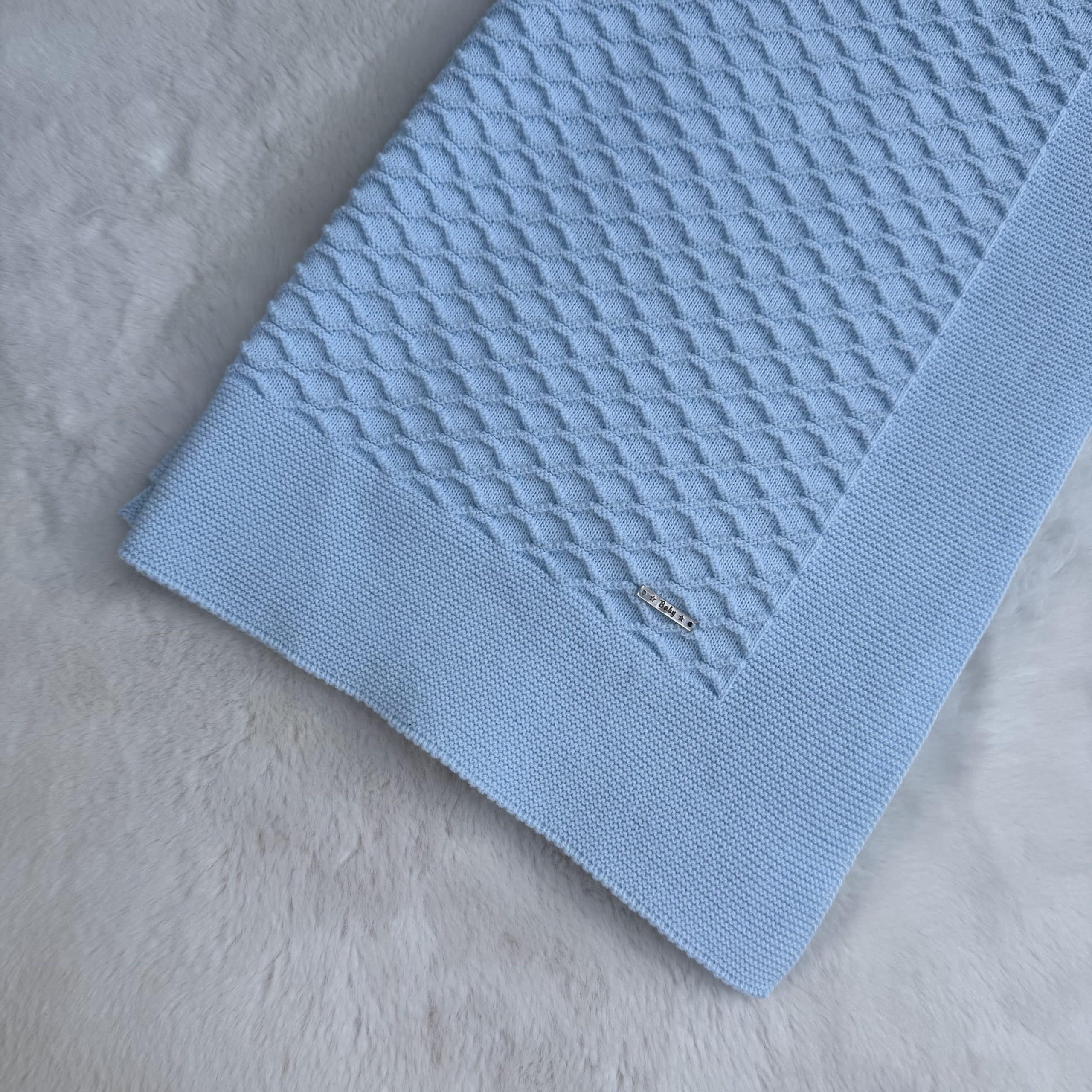 This Adorable baby Spanish shawl is perfect for a gift idea! This knitted shawl is made from 100% acrylic with a cable pattern in the front. Be sure to keep your little one warm.
